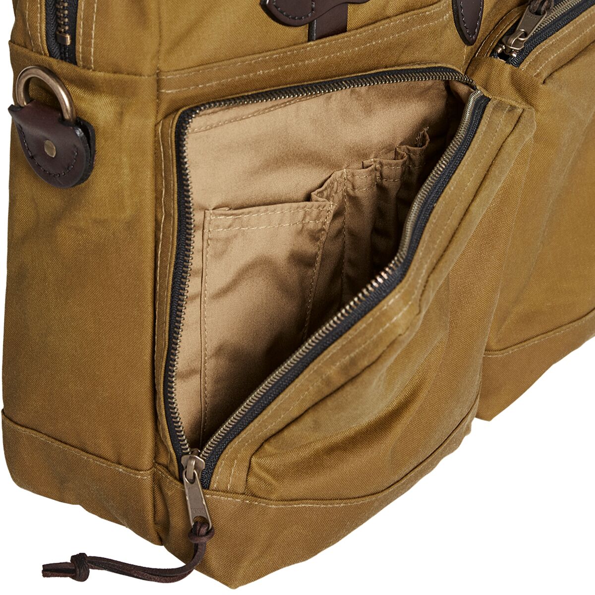 - [external] 2 zippered front, 1 rear stow, [internal] 1 zippered, organizational slots