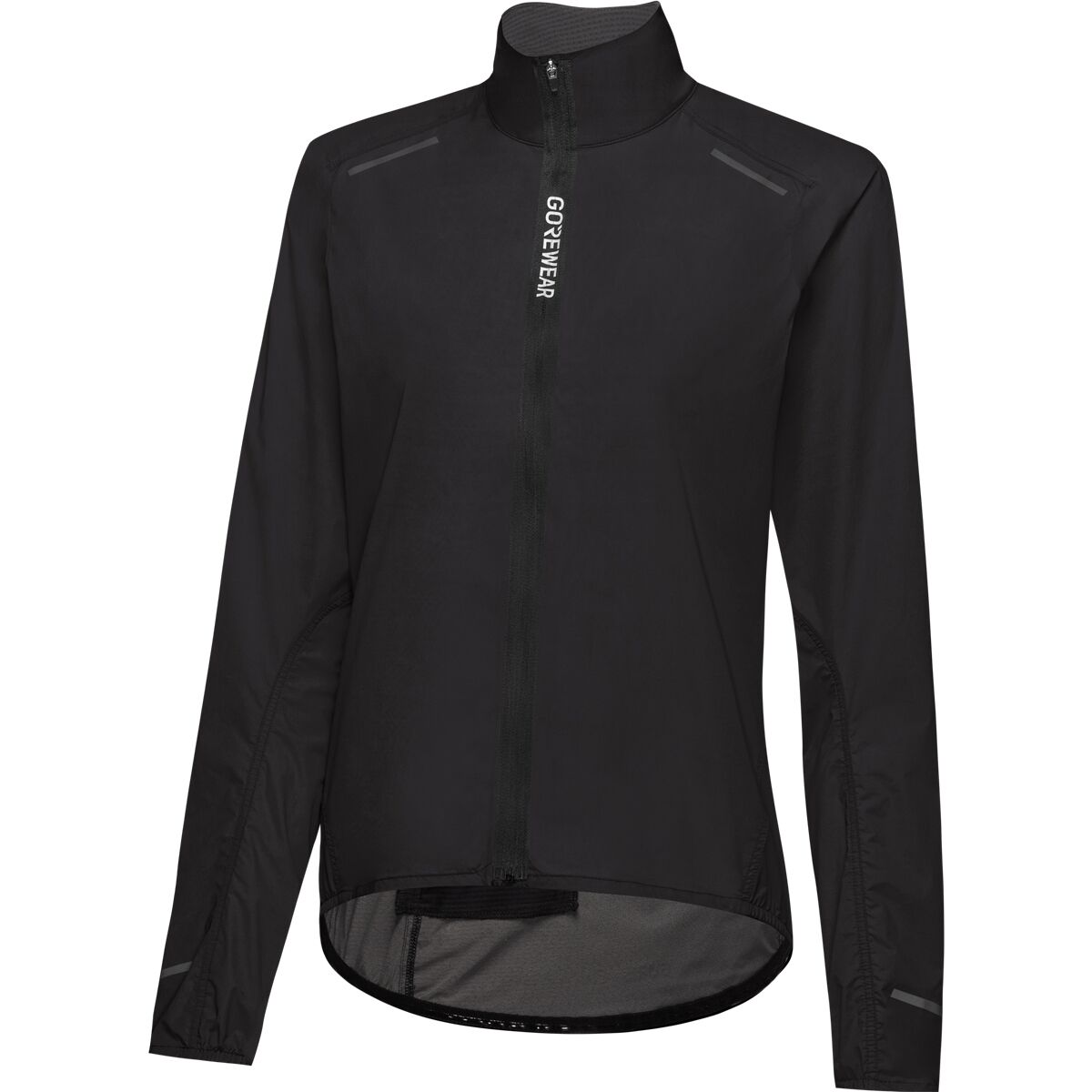 - Full-length front zip with a lined collar for wind protection