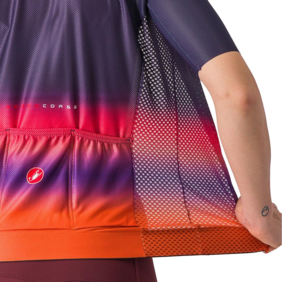 Built for hot summer days in the mountains, Castelli’s Climber´s 4.0 Jersey keeps us cool without sacrificing speed with its lightweight fabrics and rapid cooling properties. This high-alpine-focused jersey features the same aerodynamic CFD-based seam construction as the Aero Race 7 jersey but with 3D mesh fabrics that keep us cool and comfortable as we ride through the summer heat.