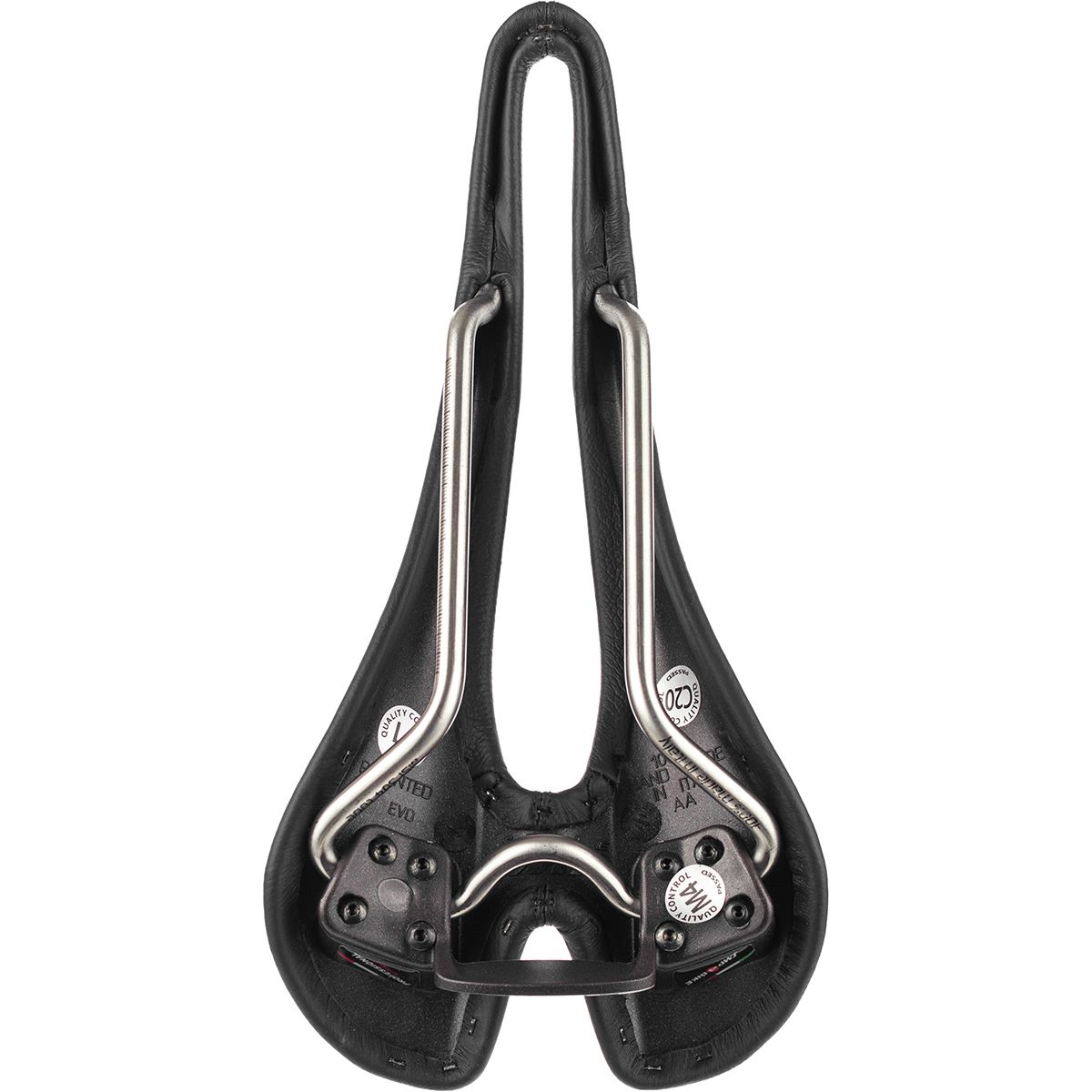 The lack of foam makes the Composit slightly less cushy, but that´s not a racer´s primary concern. More important are support and stiffness, which the Composit delivers via a nylon and carbon composite shell. The beaked nose provides more space for your twig ´n´ berries, and the pronounced center channel relieves pressure on other soft tissue areas so you can sit comfortably without loading up on padding. The raised "whale tail" back gives you something to push against, and the durable steel rails handle years of hard riding without getting loose or losing strength.