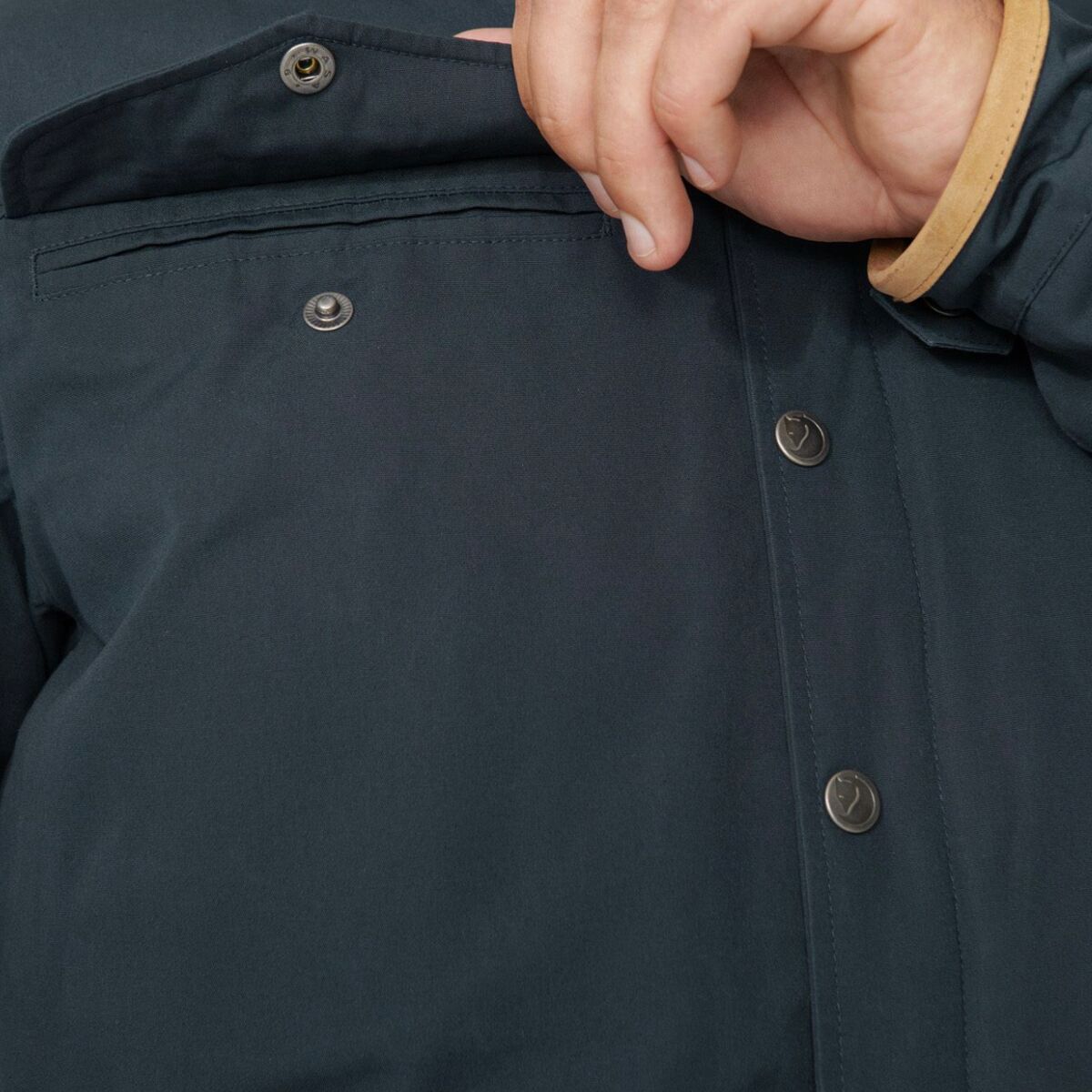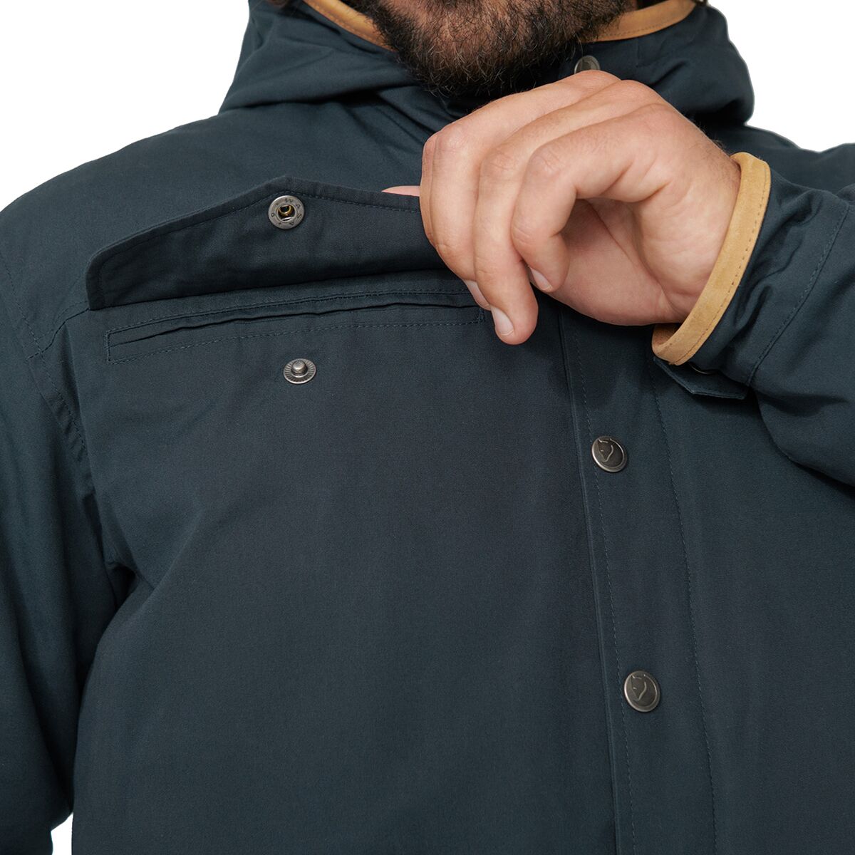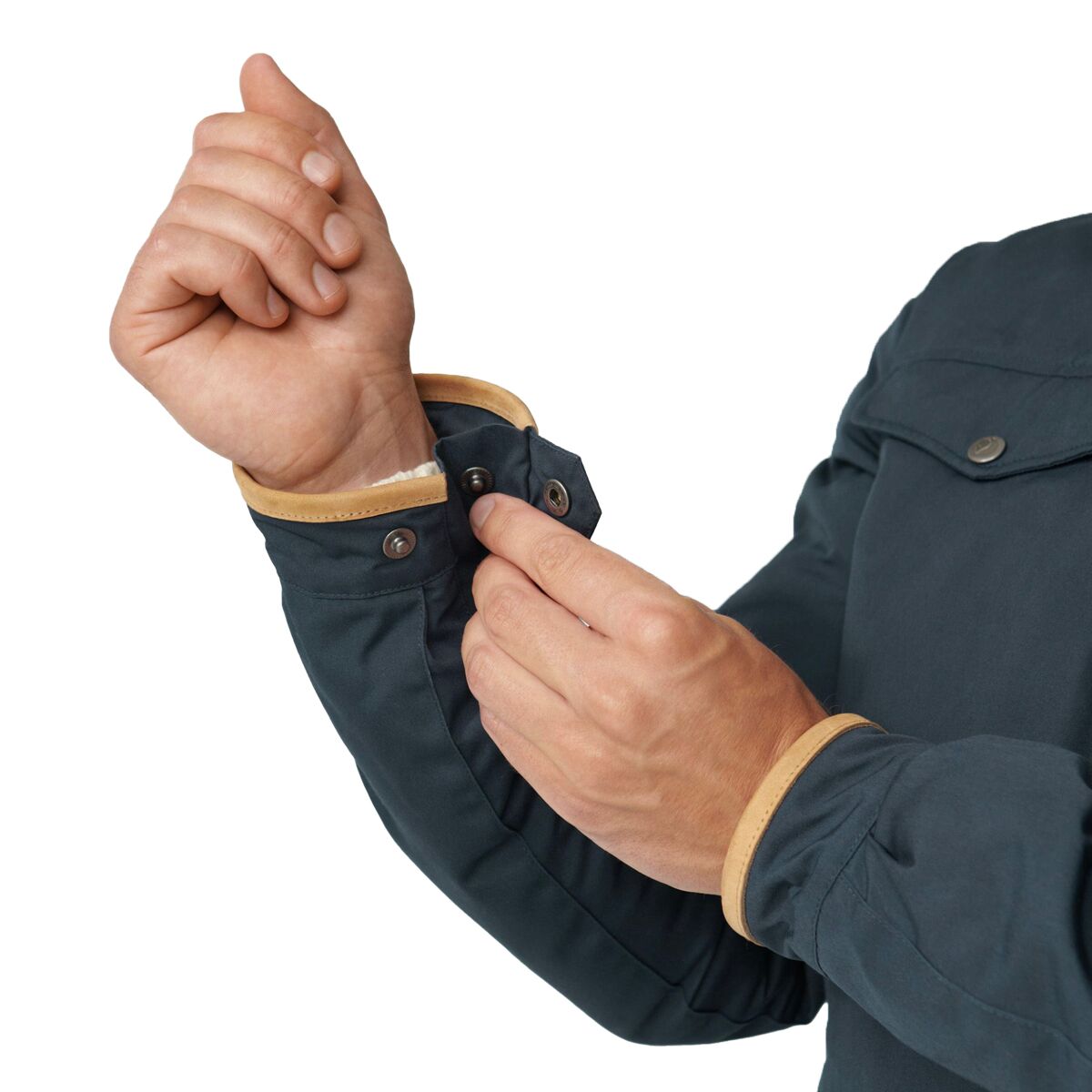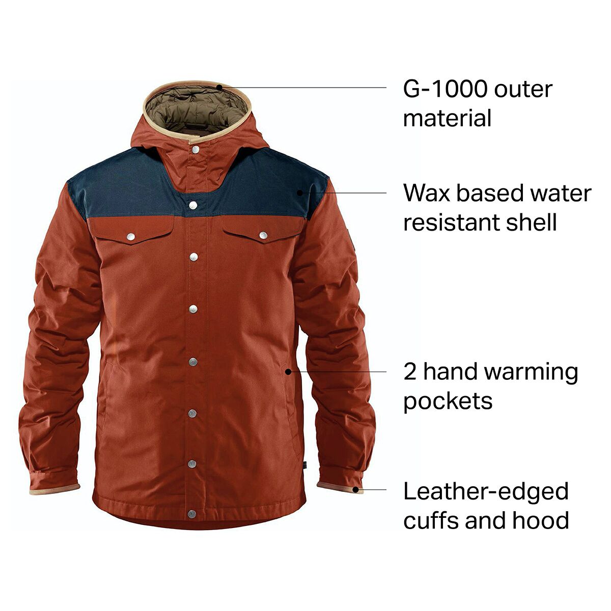 • Leather details around the hood and cuffs offer classic accenting