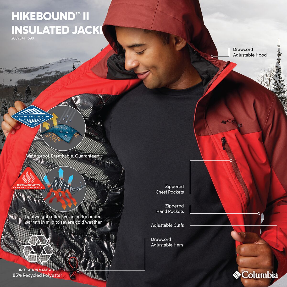 - [membrane/laminate] OmniTech (2-layer), [face fabric] 100% polyester, [lining] Omni-Heat Reflective (100% polyester)