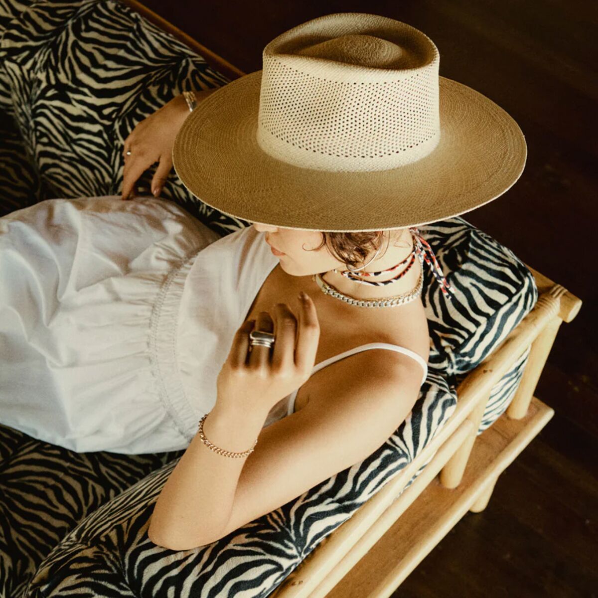 • Panama-style straw hat for casual summer wear