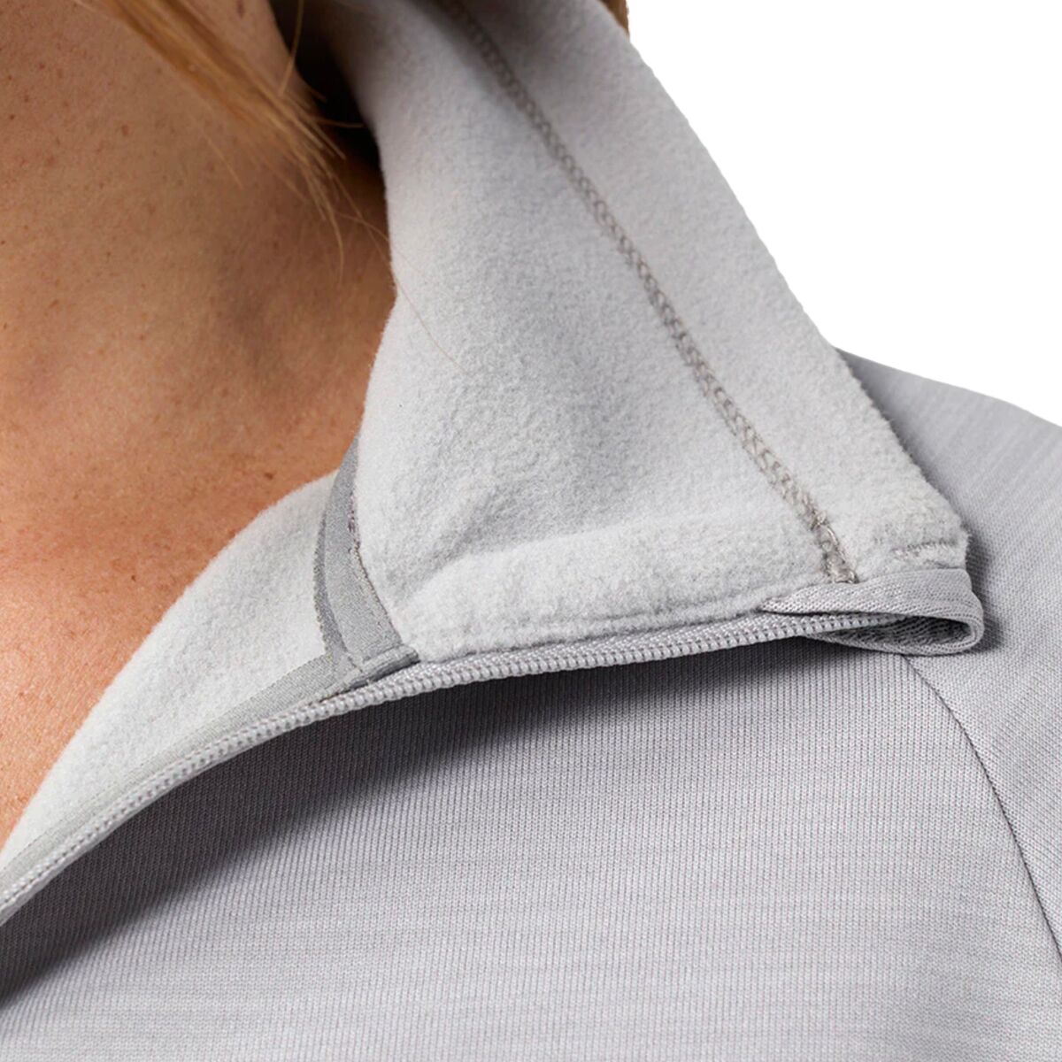 A smooth outer face slides easily under layers, while the brushed fleece interior adds next-to-skin comfort. Thoughtful details like a zippered hip pocket for essentials, a chin guard for extra warmth, and a regular fit that moves with us make this half zip a go-to choice for ski tours, trail runs, and everyday layering.
