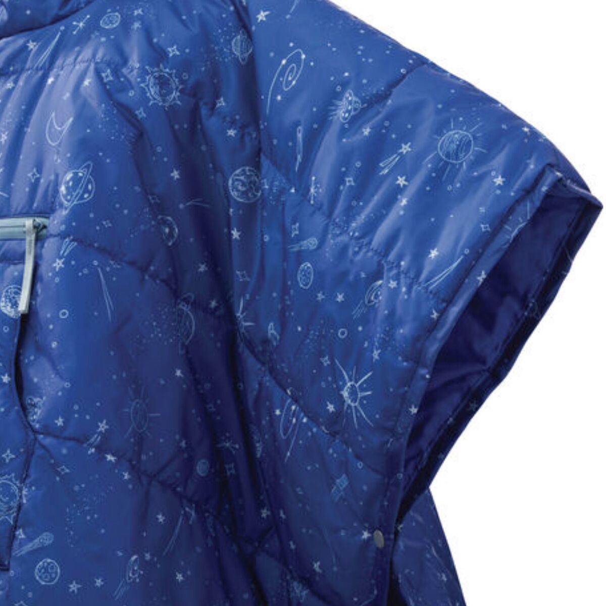 • Under-arm snaps quickly transform from blanket to poncho and back