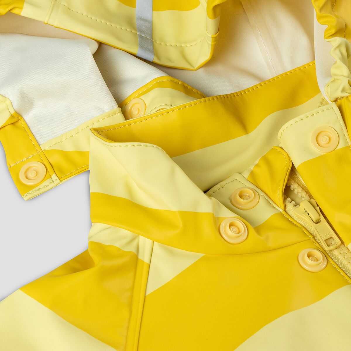 This kids´ rain jacket is made from a flexible, PVC-free material, and available in yellow, greyish green, rose blush/pink, and so on. Its seams are welded waterproof and it won´t harden in frost, making it ideal for using all year round.
