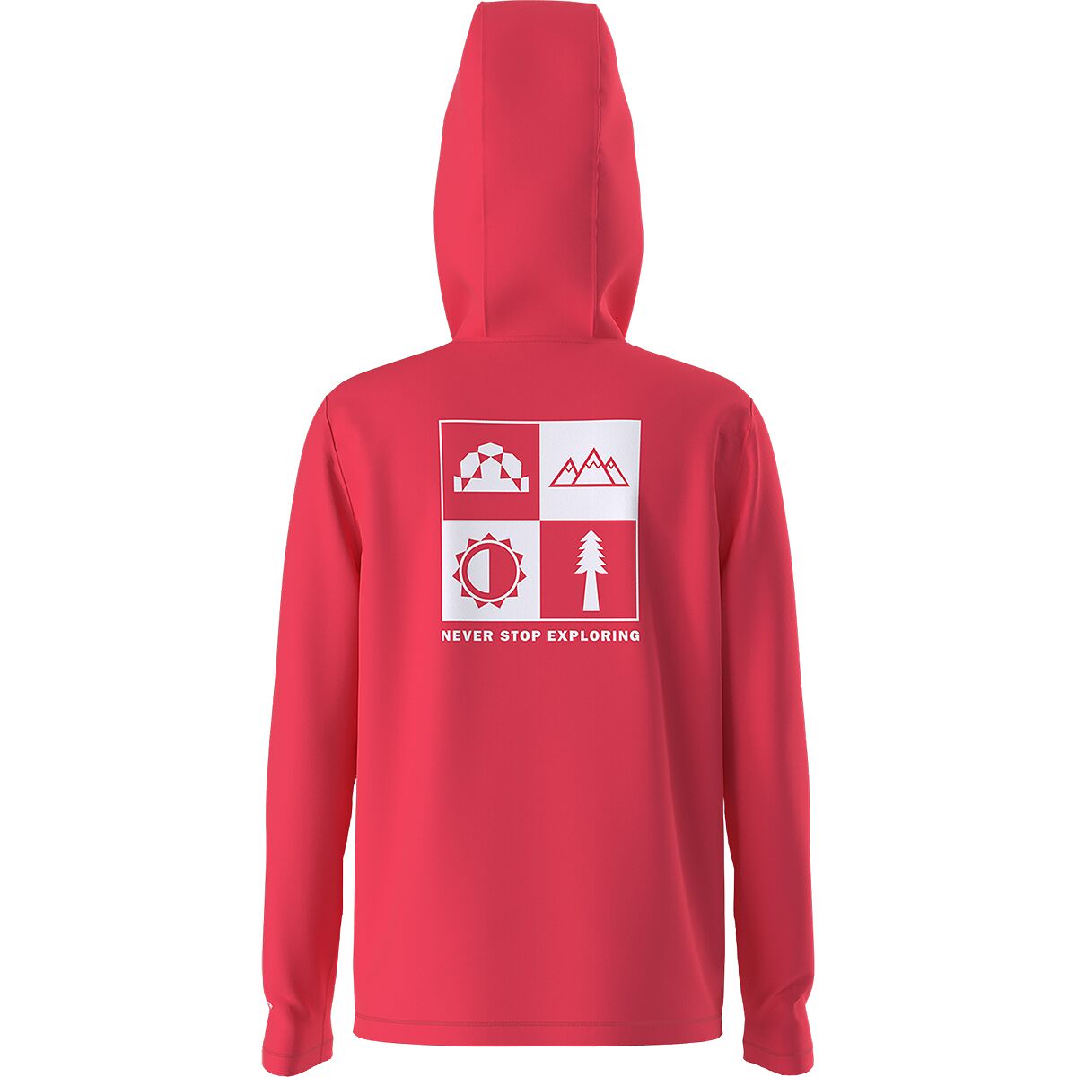 With UPF 40+ protection, this hoodie helps shield us from the sun’s rays, while the lightweight recycled polyester blend offers just the right amount of stretch for unrestricted movement. A three-piece hood adds extra coverage, and the bold graphic on the back keeps the adventure vibes strong.