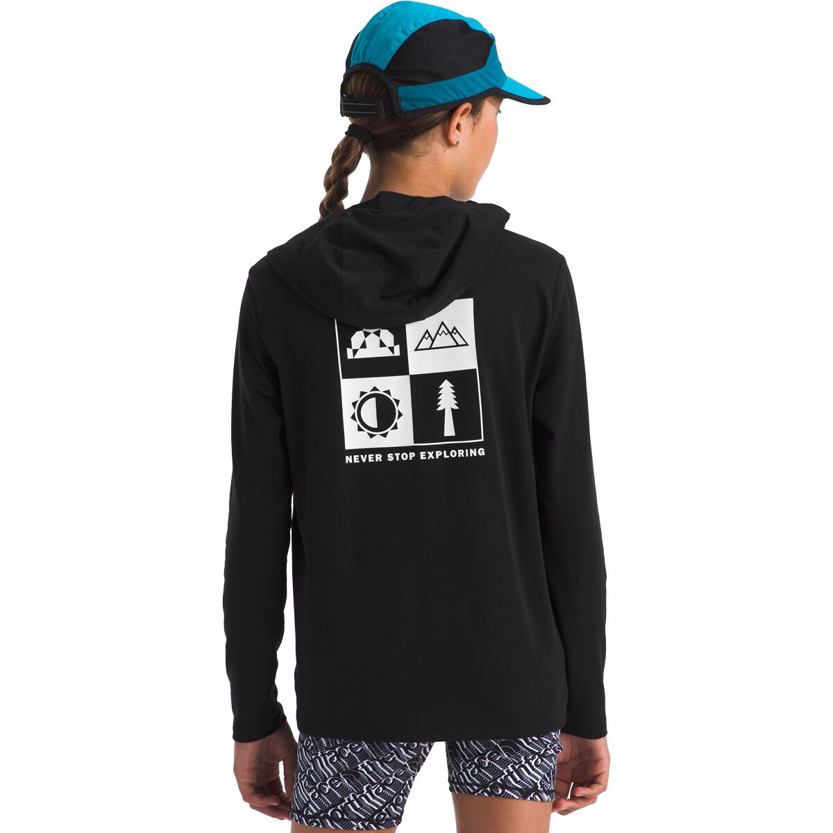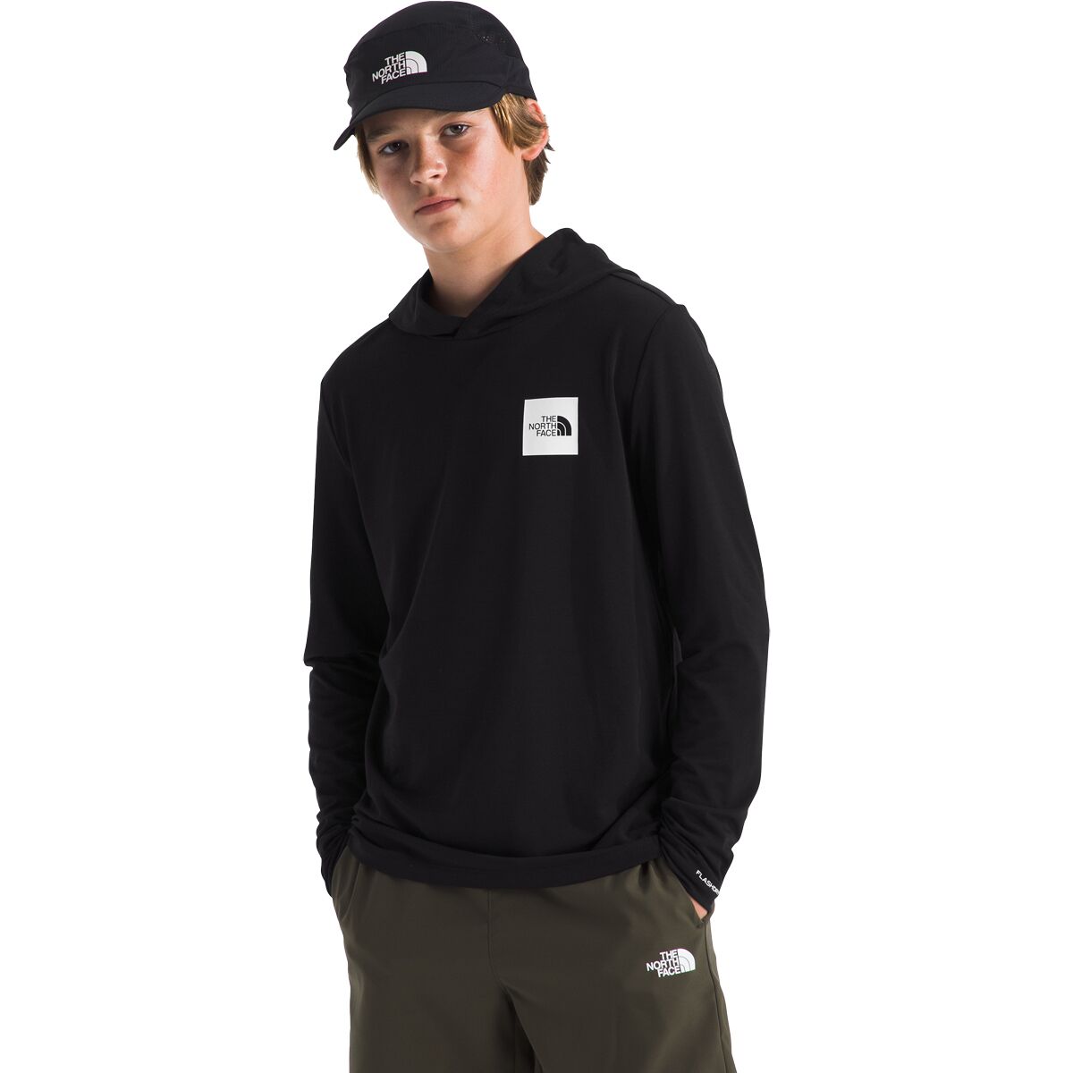 Outdoor adventures call for gear that keeps up, and the Adventure Long-Sleeve Graphic Hoodie is built for just that. The North Face uses FlashDry-XD technology to wick away moisture and enhance durability, so we stay dry and comfortable while exploring trails, climbing at the park, or enjoying a backyard adventure.