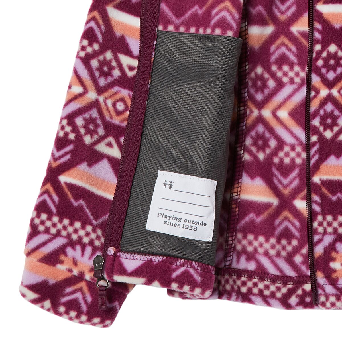 The colorful Columbia Girls´ Benton Springs II Printed Fleece Jacket is a four-season staple made from plush polyester fleece with a full-zip design. It features two hand pockets to defrost kids´ frozen fingers. From layering underneath a ski jacket to running to the school bus in the morning, this jacket makes sure young adventurers stay comfy and stylish.