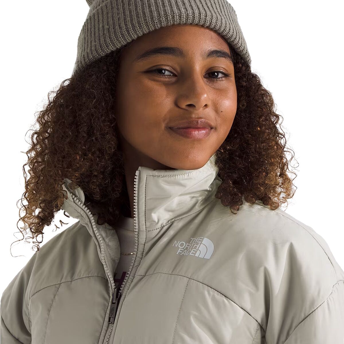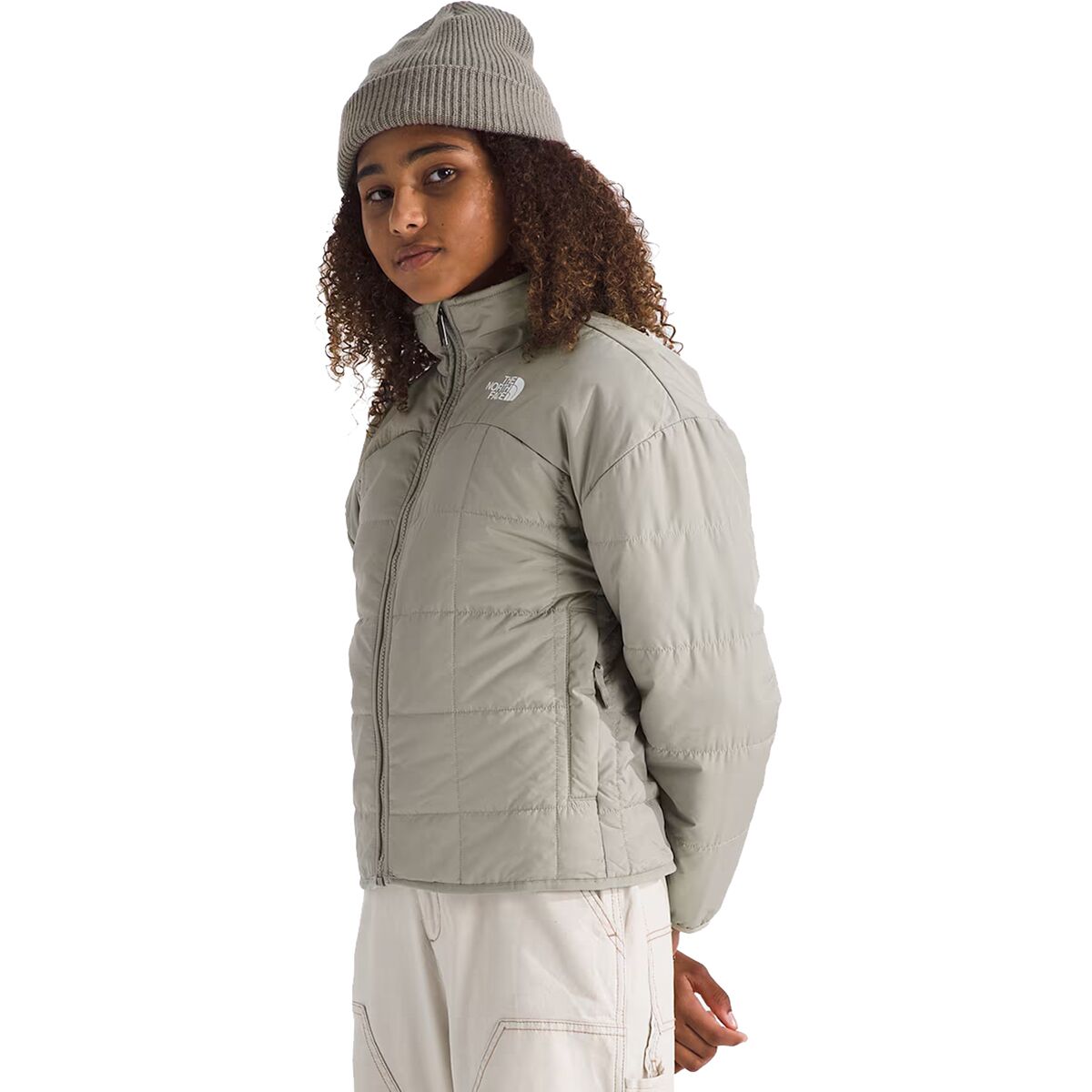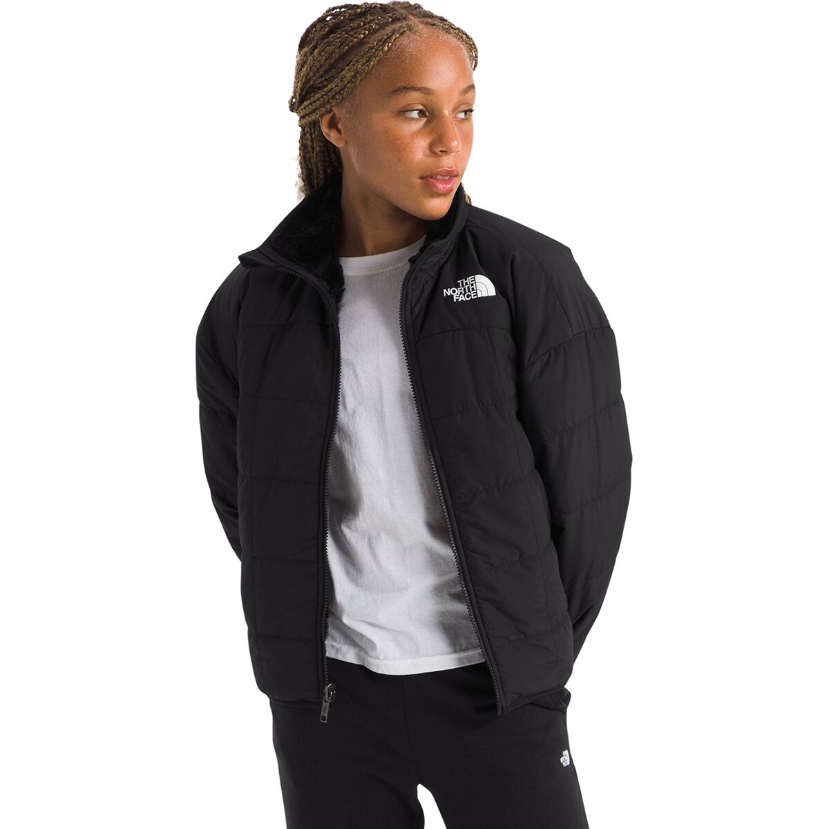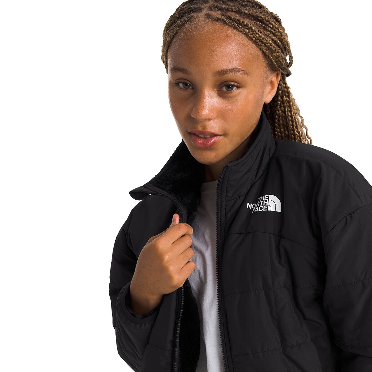 • Two-sided junior jacket offers versatile styling and cozy winter warmth