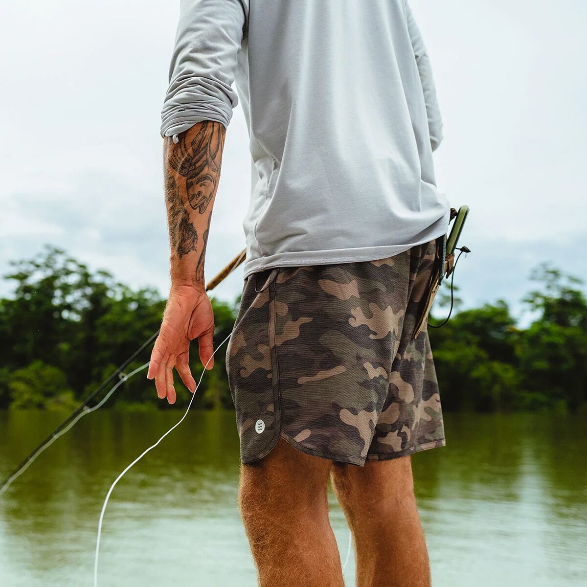 Ready for anything, the Free Fly Reverb Short takes us paddling to a trailhead, hiking to a peak, and heading to a pub without breaking a sweat. The stretch cotton-poly blend lets our hips move freely and our skin breathe easy, while the treated exterior sheds splashes from our paddle and stops crisping UV rays from burning through.