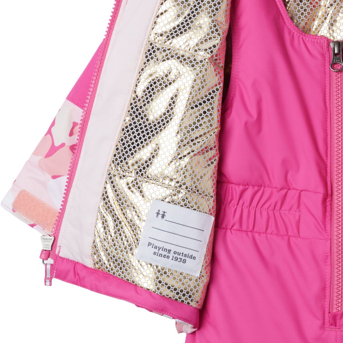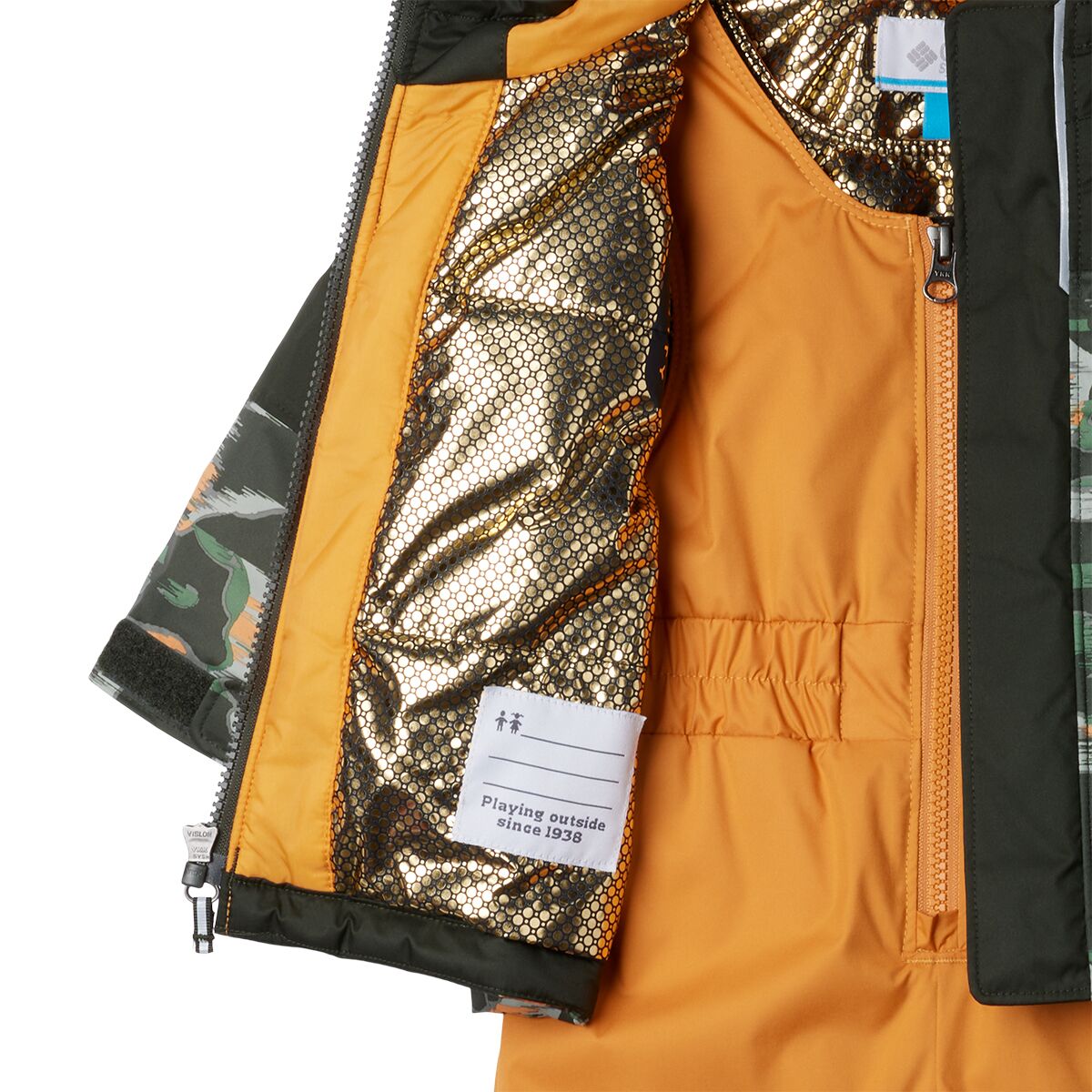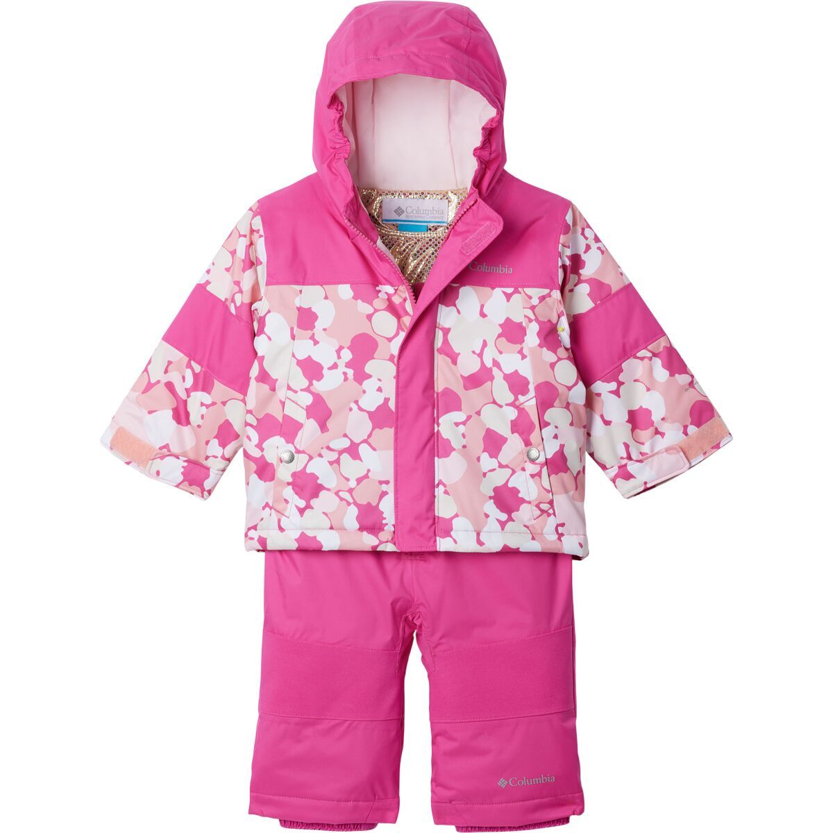 “This snow set is perfect for keeping little adventurers warm and dry on winter outings. The waterproof-breathable Omni-Tech shell keeps out moisture, while the Omni-Heat Infinity lining reflects body heat to keep them cozy. The lightweight insulation provides warmth without restricting movement, and features like an elastic waist, reinforced knees, and internal leg gaiters ensure a snug, protective fit.”