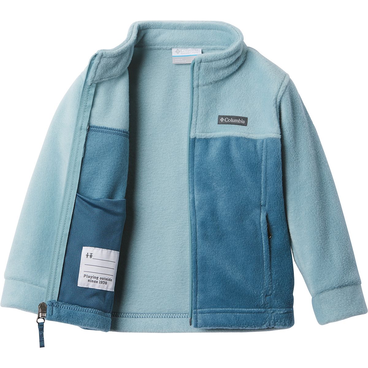The Columbia Toddler Steens Mountain II Fleece Jacket provides excellent warmth and mobility for chilly play dates at the park, brisk camping trips in the spring, and frigid snow days with a winter jacket on top.