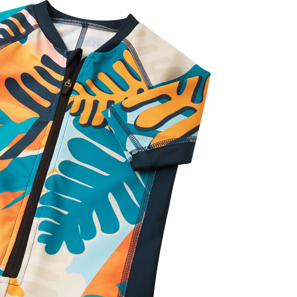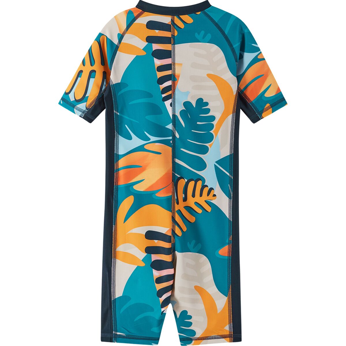 A kids´ all-in-one swimsuit for water babies. Made from quick-drying and breathable recycled material. Features high UV sun protection.