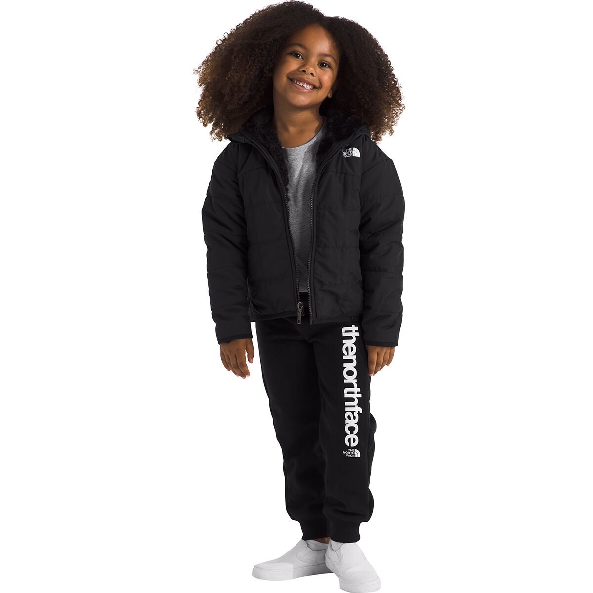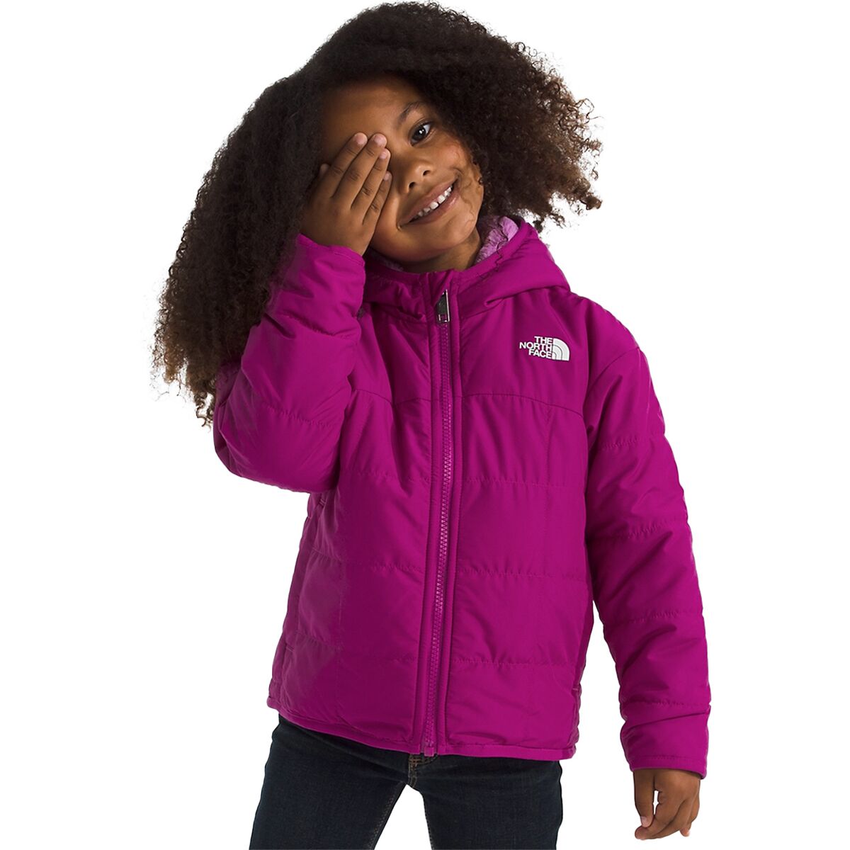 Warm without being bulky, The North Face Reversible Shasta Full-Zip Hooded Jacket gives our young adventurers a couple different looks for layering up. This quilted jacket features synthetic insulation, which keeps kids warm when wet or dry, and it´s mostly made from recycled materials to reduce our impact on the planet.