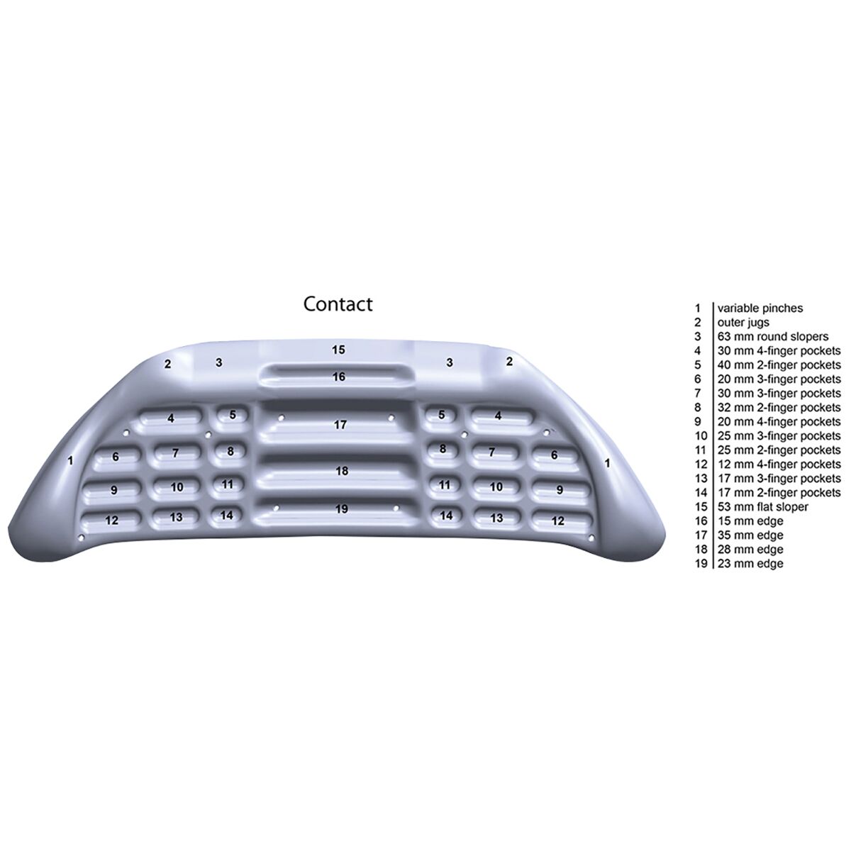 • Huge hold selection includes 11 pockets, 4 central edges, top jugs, slopers, and variable-width pinches
