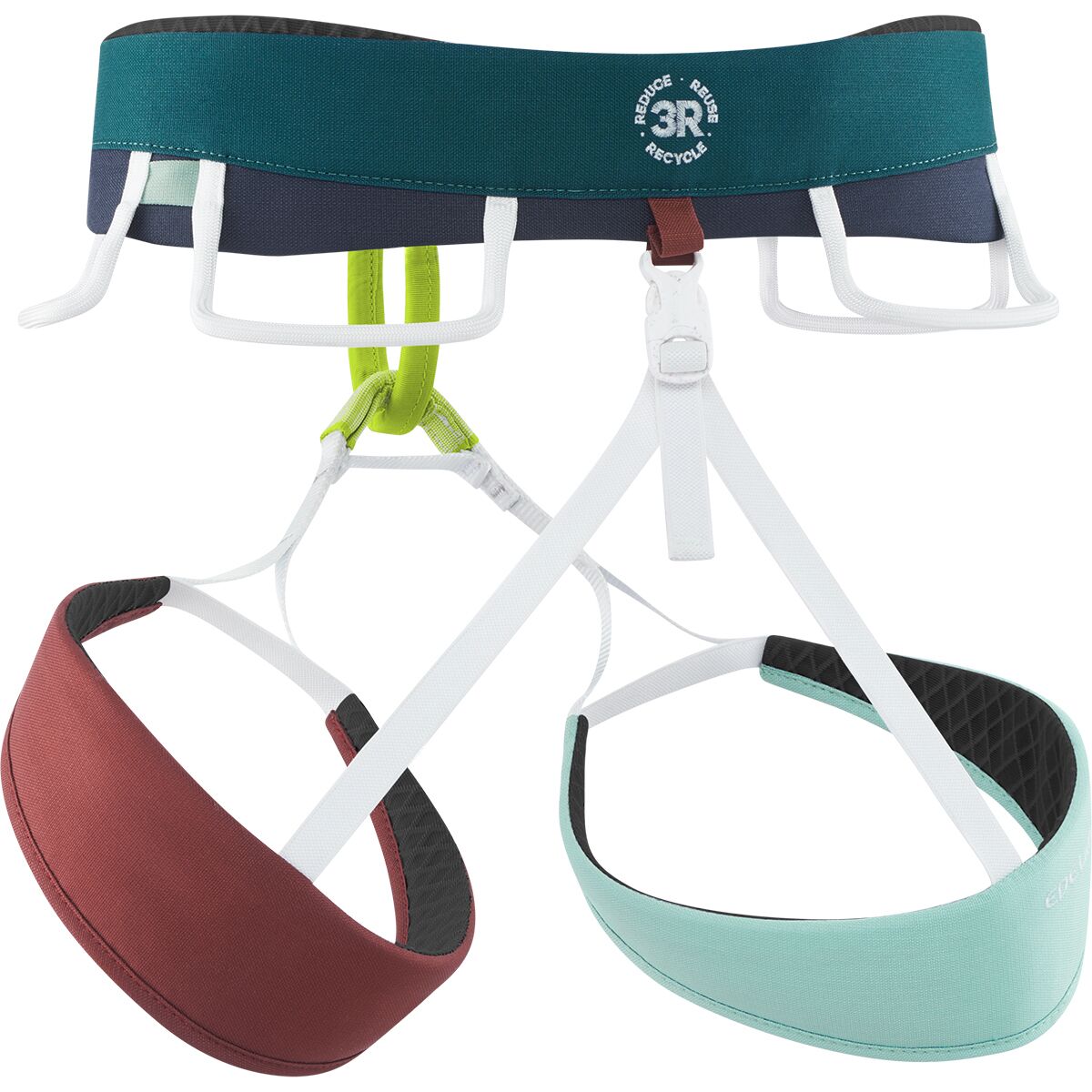 • Sport climbing harness designed with recycled materials