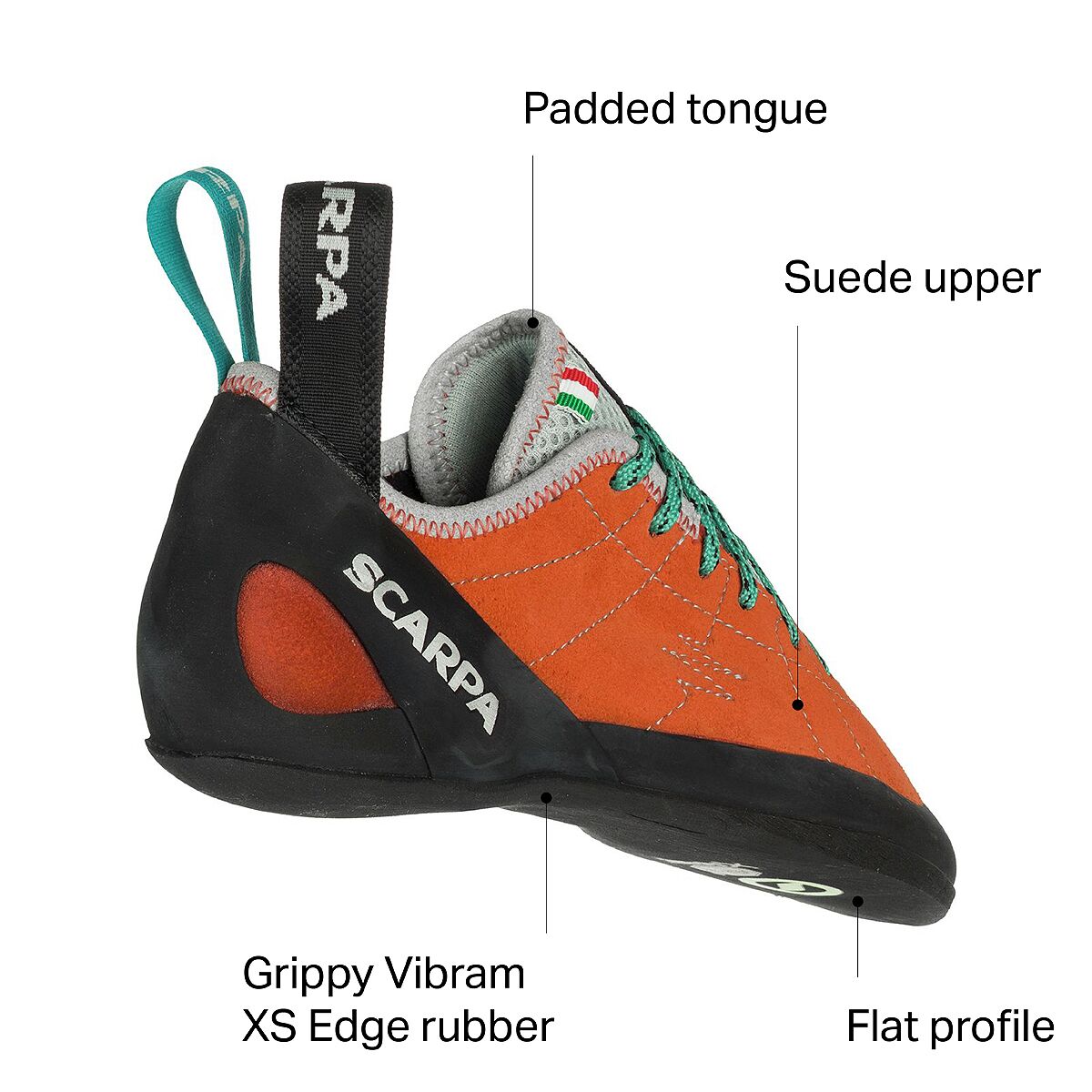 When comfort is of utmost importance, we lace into the Scarpa Helix Climbing Shoe. The flat profile, passive rand, cushioned heel, and padded tongue keep comfort high, while the hardwearing Vibram XS Edge rubber and full-length midsole give us support that still flexes for climbing versatility.