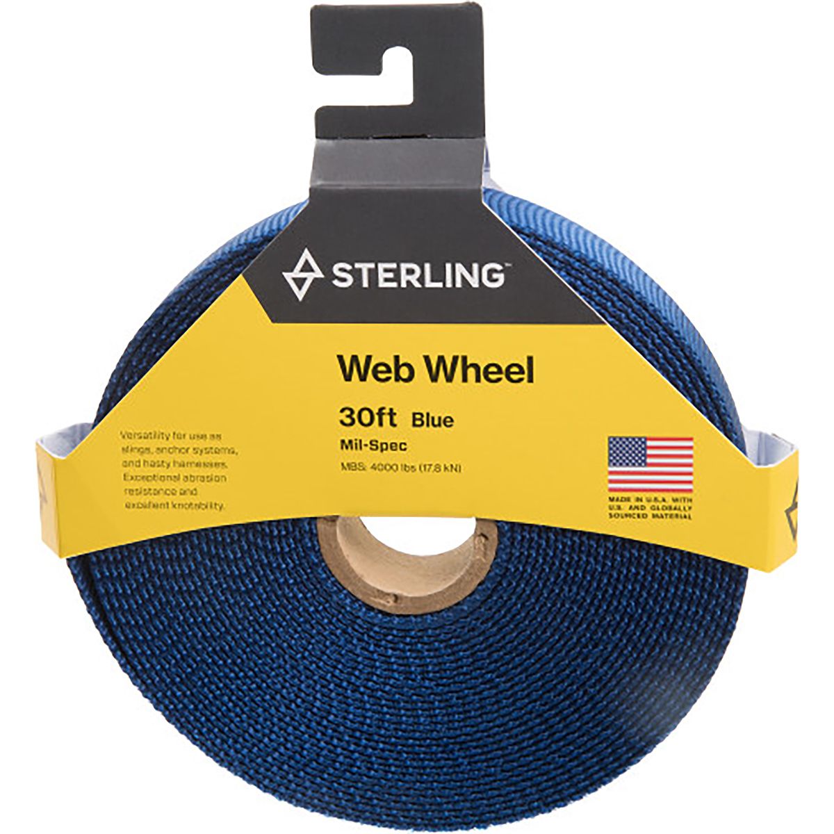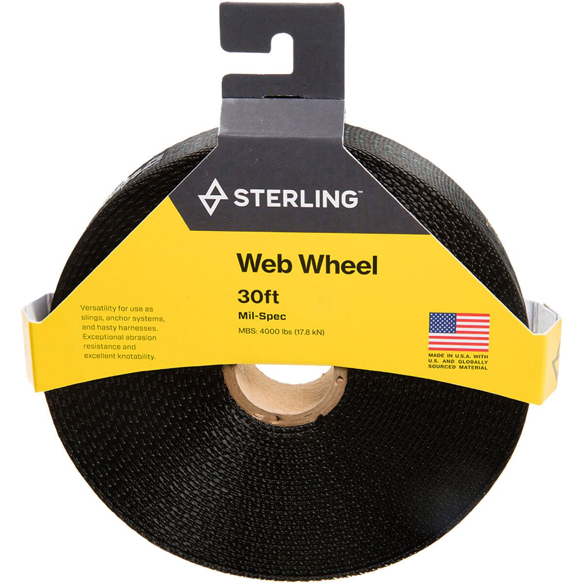 The military depends on Mil-Spec webbing for its superior strength and abrasion-resistance, so you know you can rely on the Sterling Mil Spec Web Wheel to make secure slings and anchor systems while you´re climbing. This wheel comes with 30 feet of 1-inch-thick Mil-Spec webbing so you can make new slings and anchors for a long time. It´s particularly great for wrapping around big boulders to make anchors.