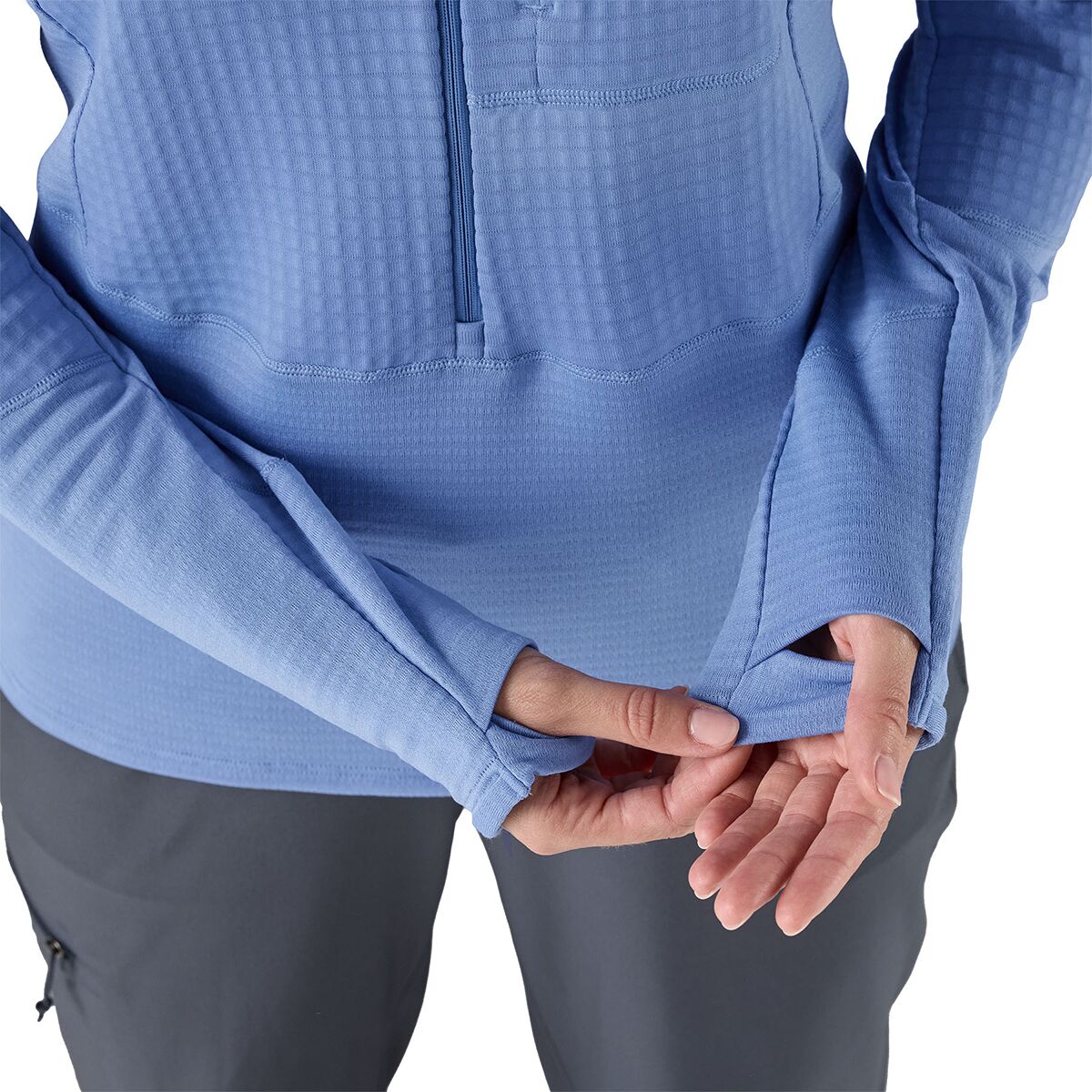 The Women´s R1 Pullover Hoody is a technical midlayer designed to keep up with active pursuits in cool conditions. Constructed with Polartec® Power Grid™ fleece, it offers lightweight warmth and exceptional breathability, making it a perfect choice for layering or wearing alone. The grid design traps heat while wicking moisture, keeping us comfortable during high-output activities.