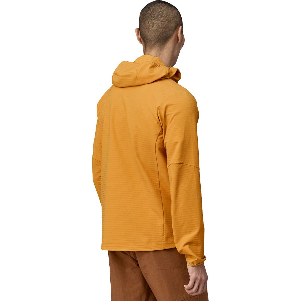 The Patagonia R1 Techface Hooded Fleece Jacket fits nicely into our performance arsenal for everything from early season climbing to a late-season ski tour. The next-to-skin feel of its stretchy, recycled fleece blend is warm, stretchy, and breathable, yet provides extra abrasion- and weather-resistance on its exterior. A DWR finish sheds light precipitation, articulated patterning keeps us moving freely during our ascent, and the hood is compatible with climbing helmets so we don´t have to sacrifice safety in favor of comfort.