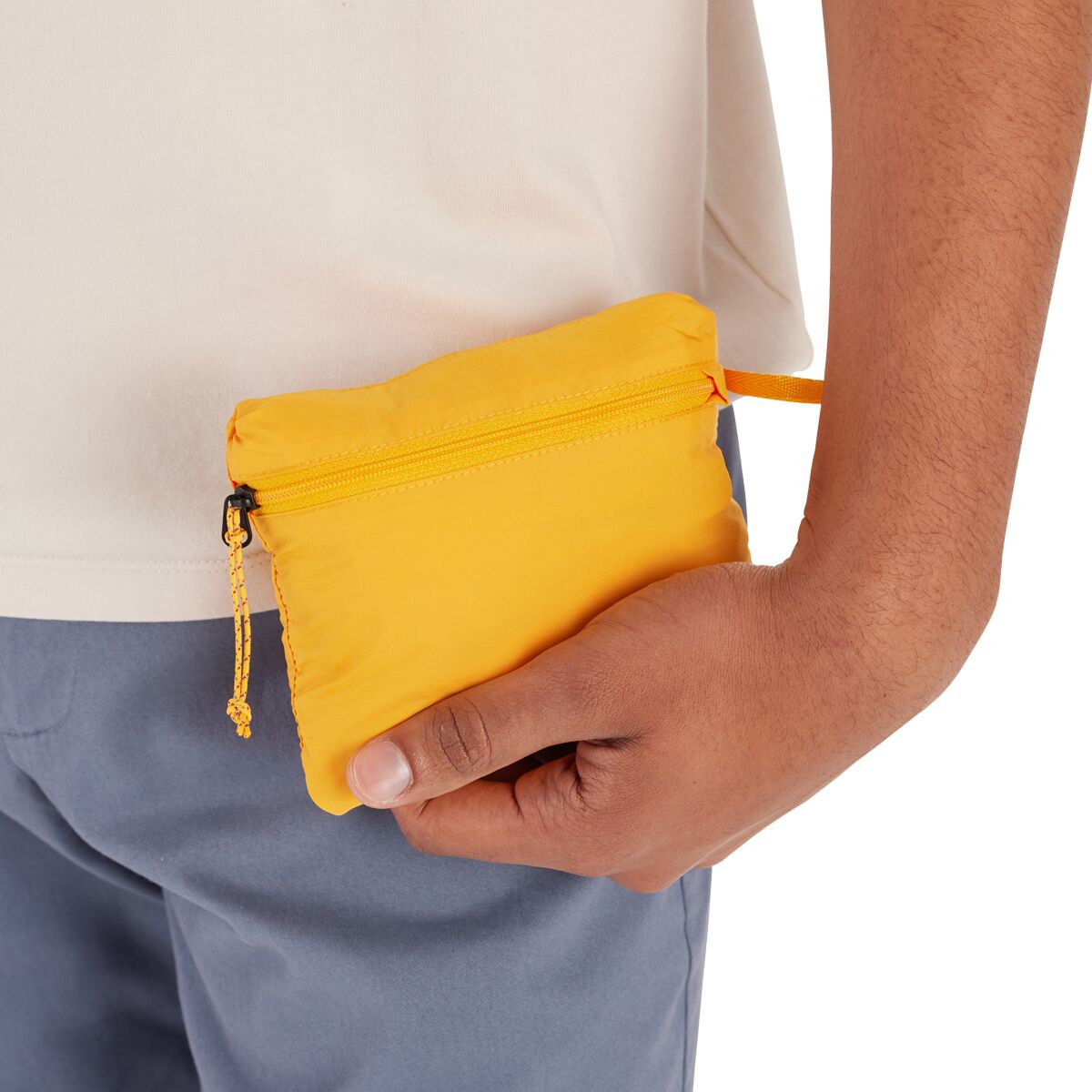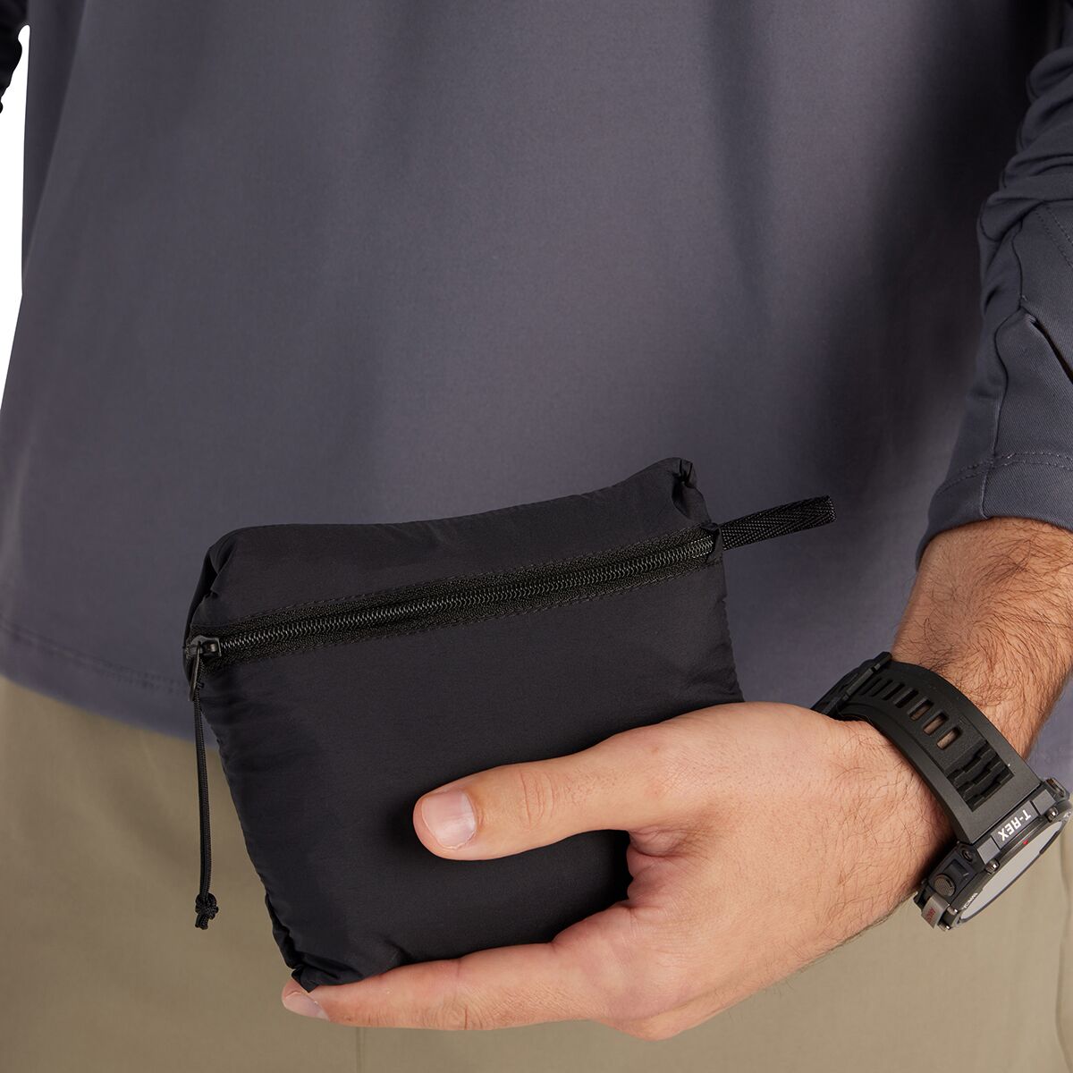 • Zips inside its own chest pocket for compact stashing
