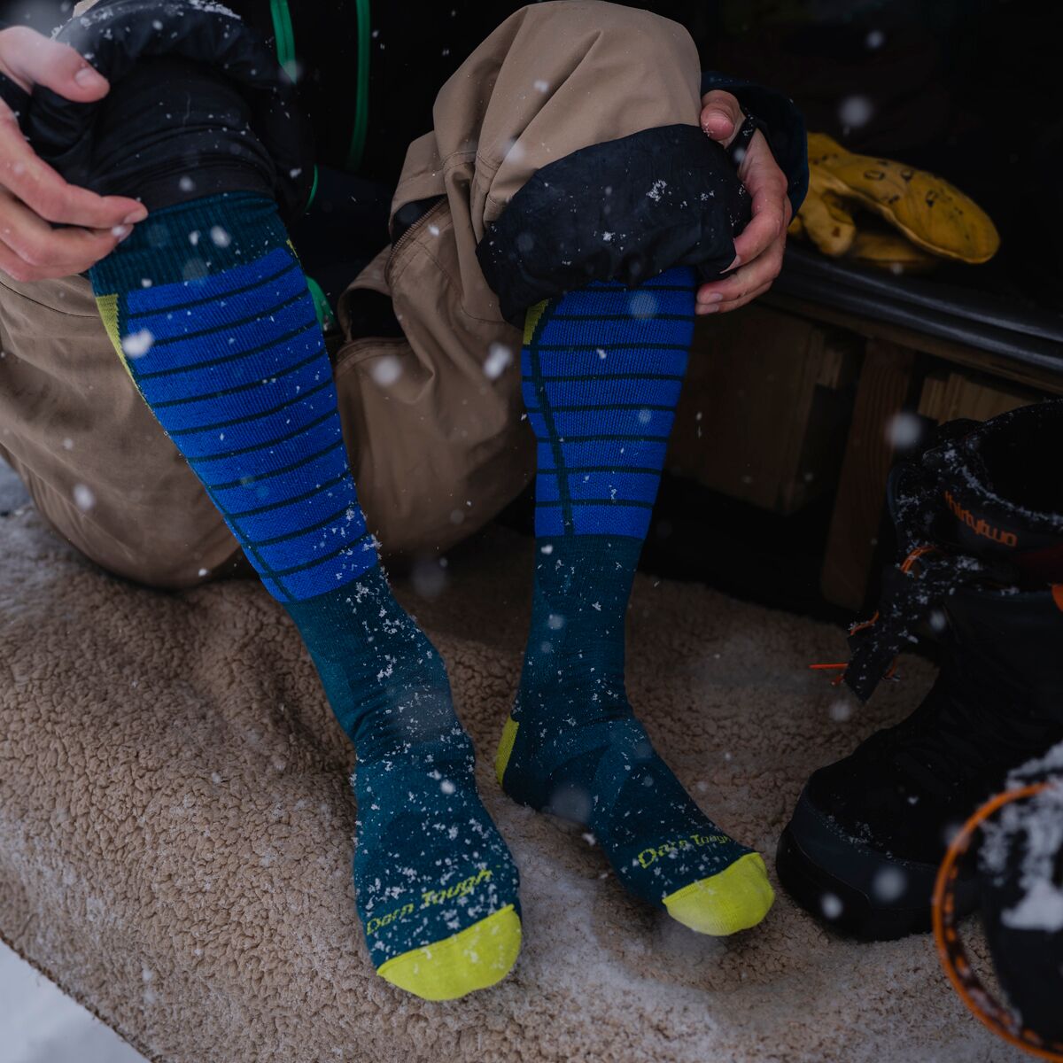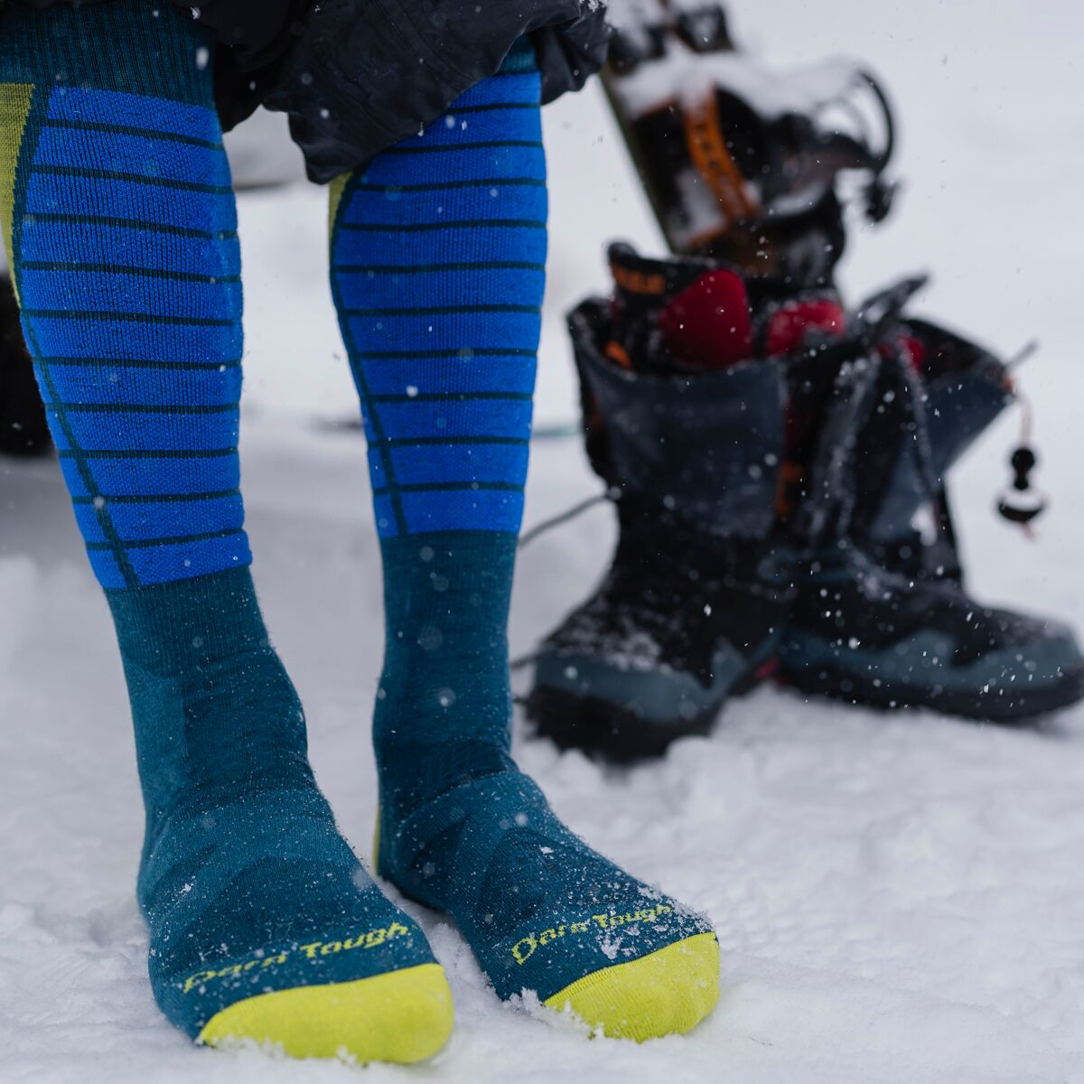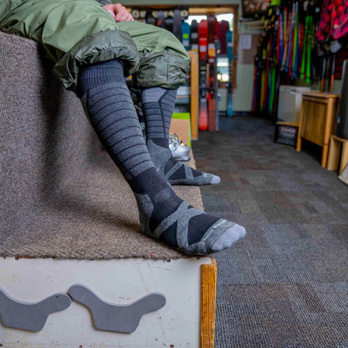 • Specifically-padded over-the-calf ski socks for cushioned comfort