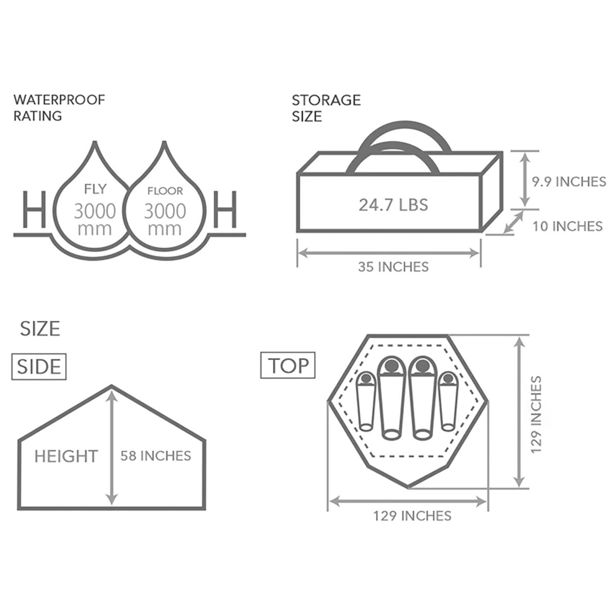 • Hexagonal floor easily allows three people to sleep