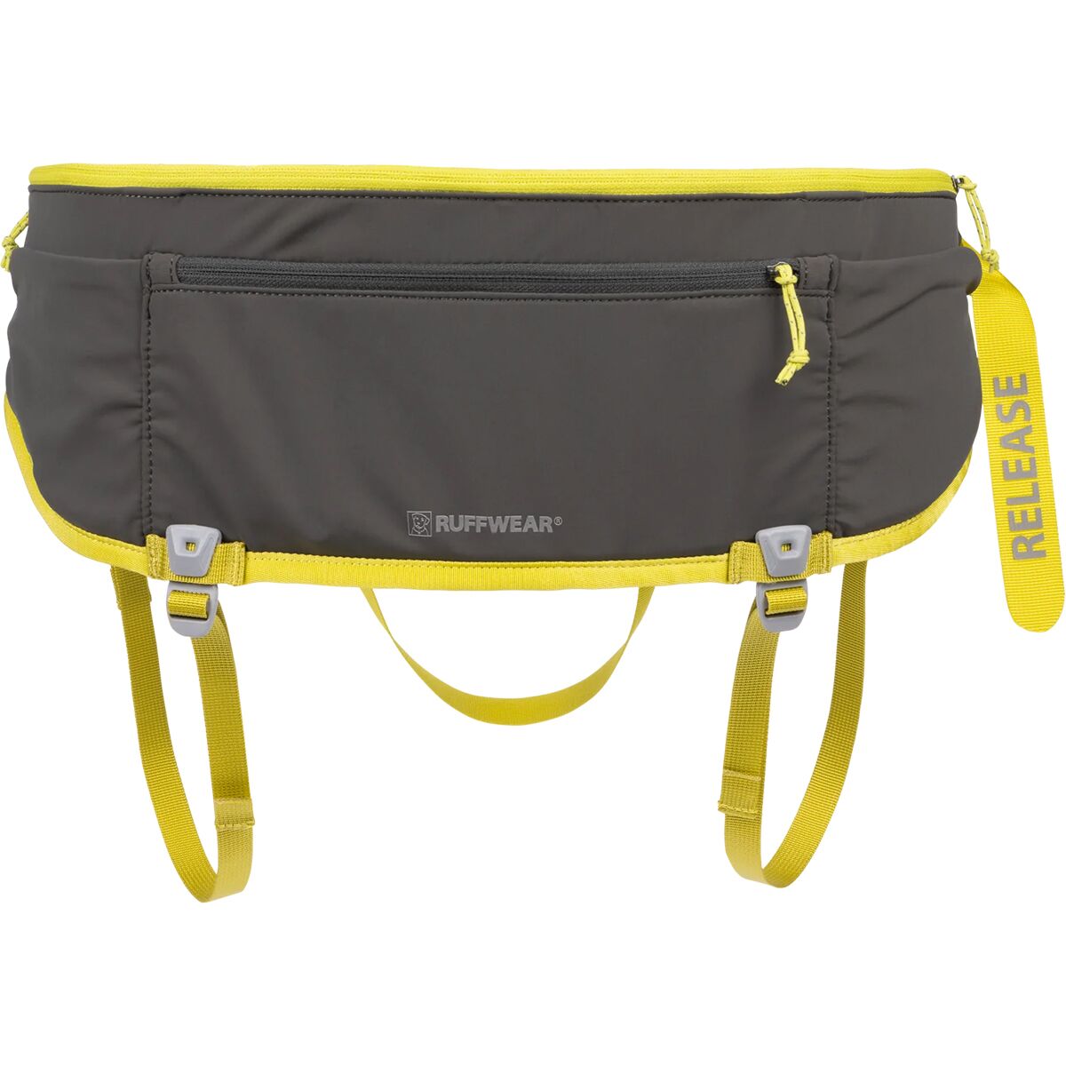 - [harness stack-up] 150D polyester ripstop, PFC-free DWR finish, PU coating, [padding] polyethylene foam, 75D polyester lining, PFC-free DWR finish, PU coating, [webbing] nylon, [towline] 75% polyester, 25% elastic, [hipbelt] 82% nylon, 18% elastic, 150D polyester, PFC-free DWR finish