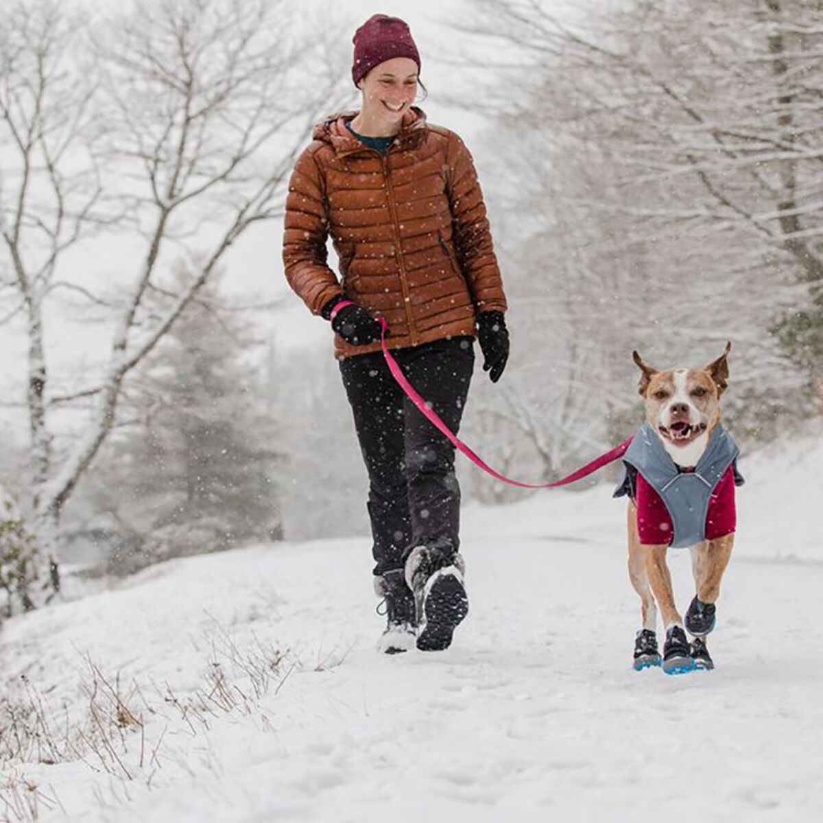 Regardless of the fact that it´s incredibly hilarious to watch your dog slide uncomfortably on icy surfaces, Fido is better off having a hint of traction thanks to the Ruffwear Polar Trex Pairs. Ideal for cold weather, the Polar Trex feature an insulated, softshell fabric for enhanced defense against chilly snow and equally as chilly temperatures. Meanwhile, the Vibram outsole maintains just-enough traction so Fido doesn´t go careening off and hurt themselves, and the hook-and-loop closure maintains a personalized fit. Ruffwear emphasizes that you measure the length of your dog´s paws to ensure that you buy the right fit, otherwise you risk losing a boot or cramping Fido´s foot (and style—after all, there´s nothing more embarrassing than the Dreaded Boot Walk). Additionally, it´s important to note that this edition includes two boots instead of four.