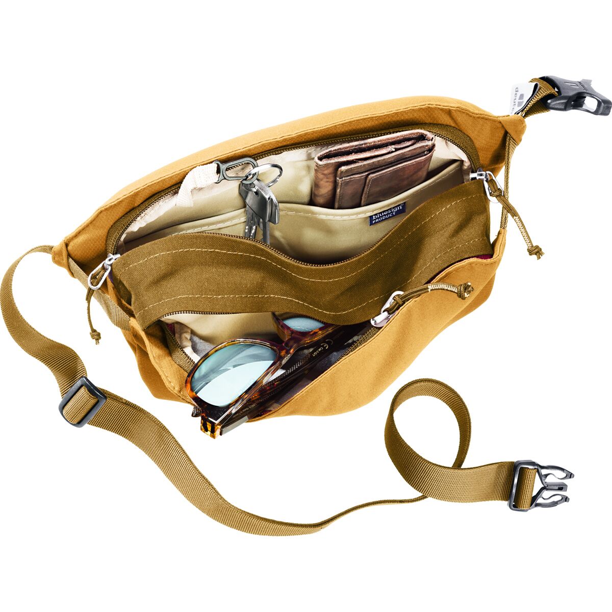 The Deuter Passway 2L Lumbar Pack is the perfect crossbody companion for travel and daily life. Designed with just the right amount of storage, this pack easily accommodates our valuables, including a padded sleeve to keep our tablet safe. Made from 100% recycled materials and certified as a bluesign® and Green Button product, this pack prioritizes sustainability without compromising on performance. With features like a zippered front compartment, key clip, and an adjustable shoulder strap, this lightweight and eco-friendly bag is ready for anything—from traveling to daily errands.
