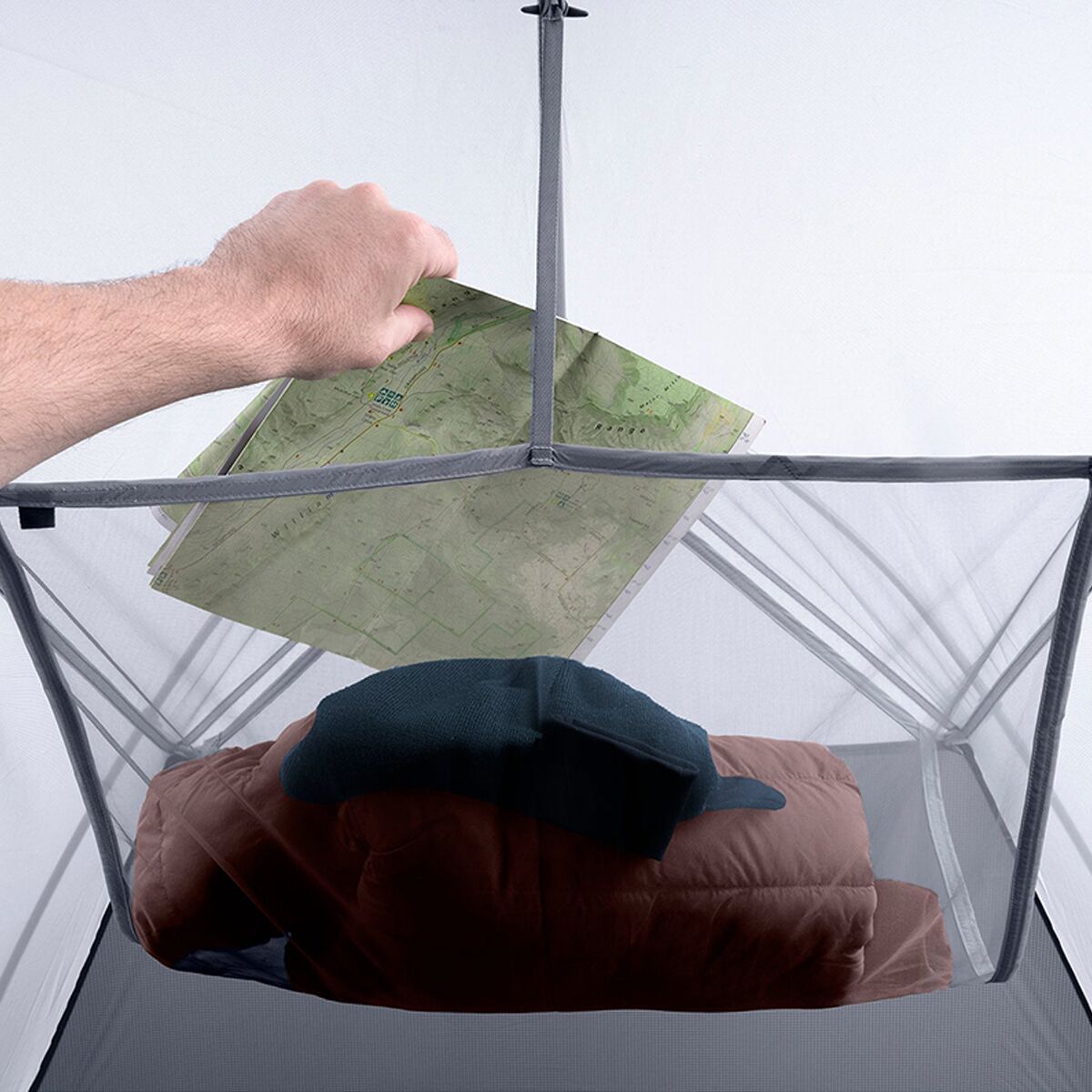 Stash your clothes, headlamps and other essentials within easy reach with our ultra-lightweight mesh Telos Gear Loft. Easily attached and detached with quick-connect V-Toggles, the Gear Loft utilizes the space above your legs for extra storage off the tent floor.