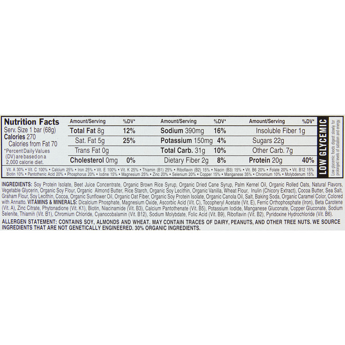 Brain feeling sluggish? Grab a Clif Bar Builders Protein Bar out of your 12-pack, and pep up. Each of these bars contain a whopping 20 grams of protein, along with vitamins and minerals, to give you a boost when start to zone out rather than be in the zone. Clif Bar doesn´t use trans fats, and this low glycemic bar won´t cause a sugar high followed by the crash and burn.