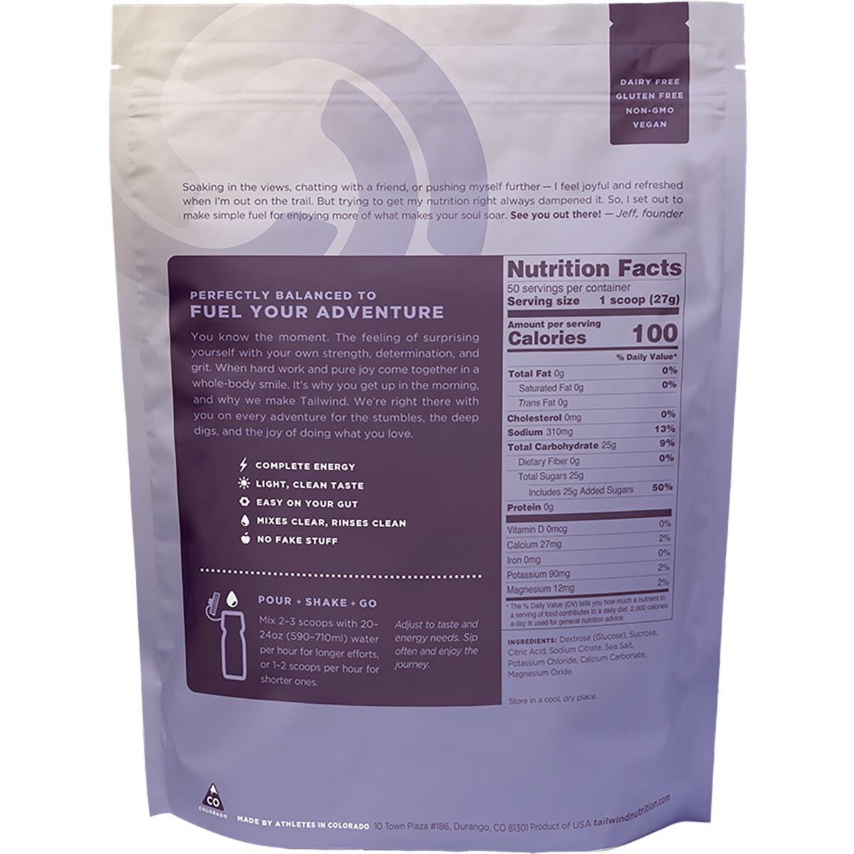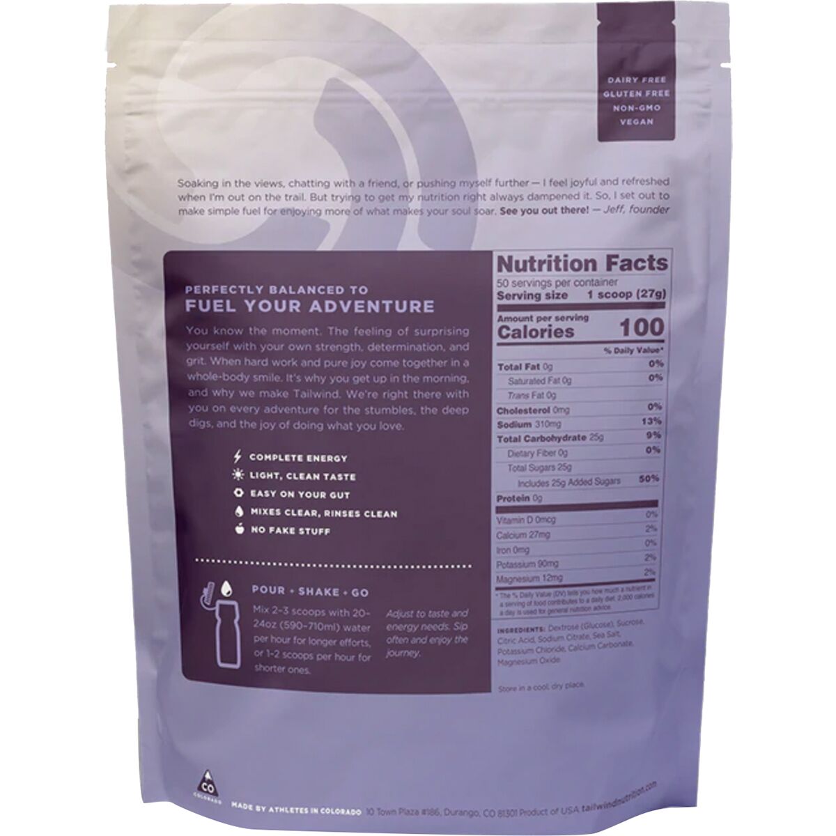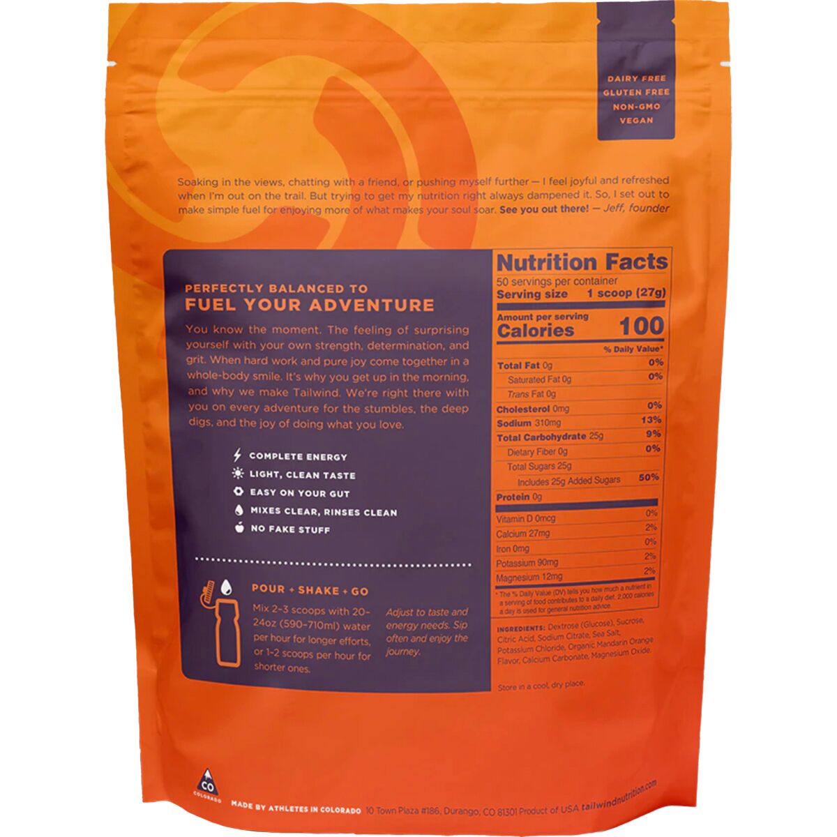 Tailwind Nutrition´s Endurance Fuel was created by endurance athletes in Durango, CO and has been embraced by adventure junkies everywhere who are chasing FKTs and PRs on their own or during officially sanctioned endurance events. The inspiration was simple: to cover fuel, hydration, and electrolyte needs in a single, mild-tasting drink that won´t turn your stomach into a brick. It´s also hydration pack and bottle friendly, so you can just rinse your bottle or bladder with no funky aftertaste or smell.