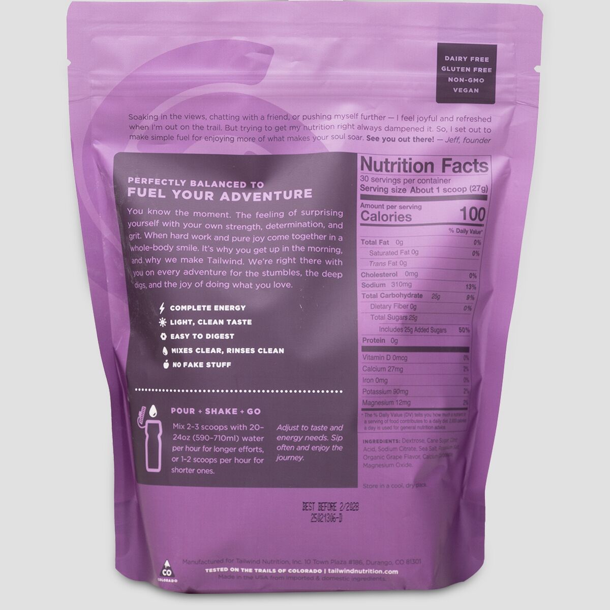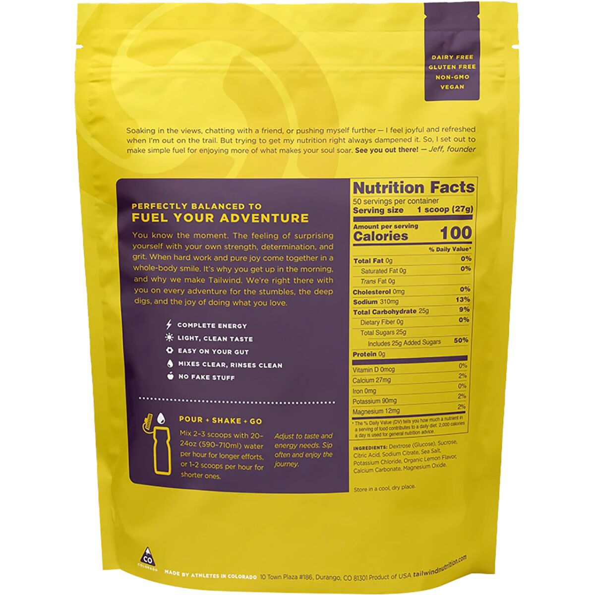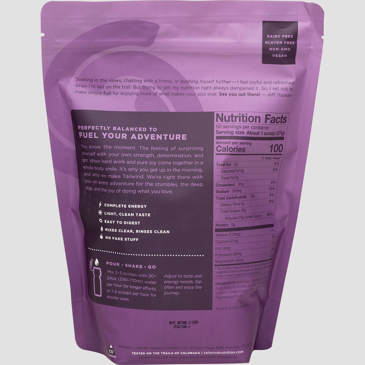 Tailwind Nutrition´s Endurance Fuel was created by endurance athletes in Durango, CO and has been embraced by adventure junkies everywhere who are chasing FKTs and PRs on their own or during officially sanctioned endurance events. The inspiration was simple: to cover fuel, hydration, and electrolyte needs in a single, mild-tasting drink that won´t turn your stomach into a brick. It´s also hydration pack and bottle friendly, so you can just rinse your bottle or bladder with no funky aftertaste or smell.