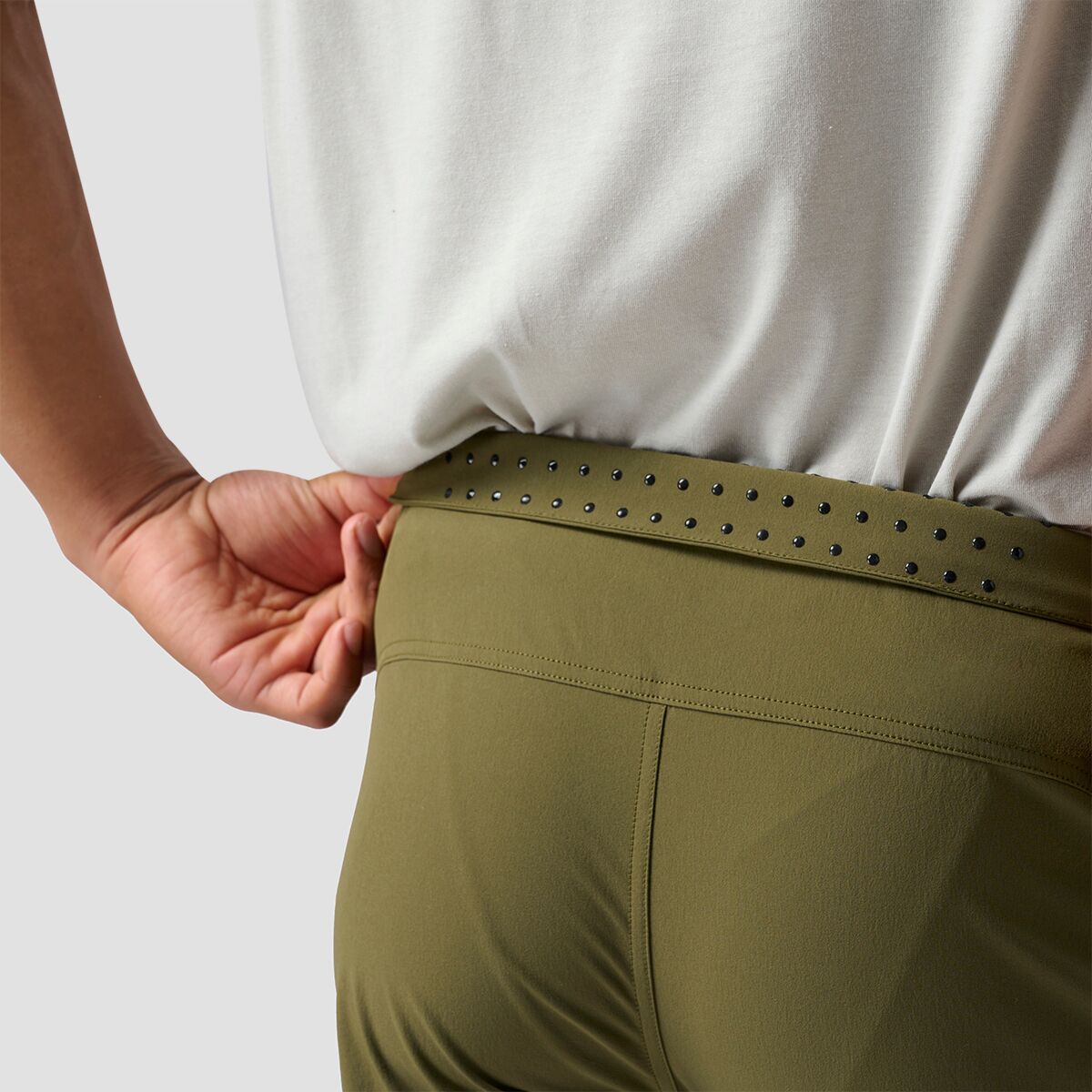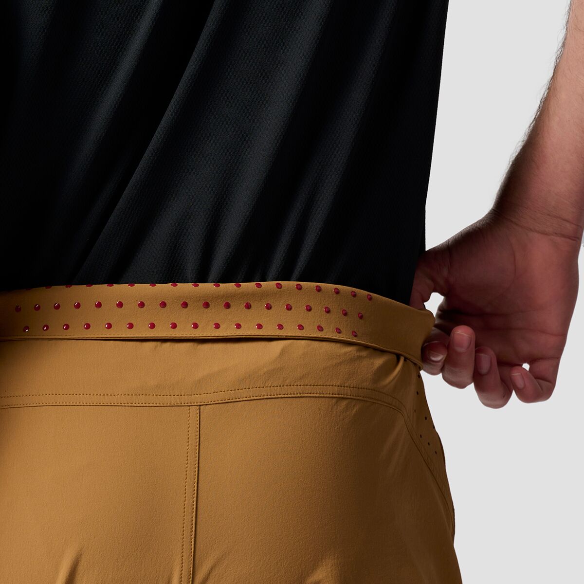 - Integrated belt and silicone gripper dots hold waist in place