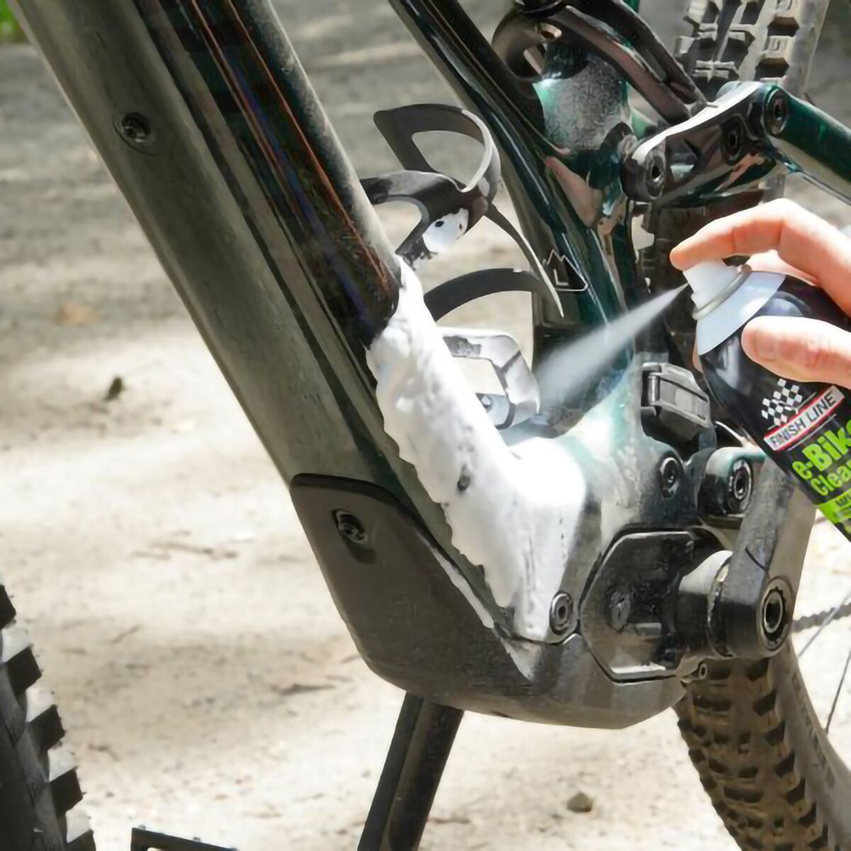 Our unique, foaming cleaner makes e-Bike maintenance easy. The rinse-free technology safely cleans motor and battery casings, Battery contacts and pins, as well as your frame, wheels and any other parts!