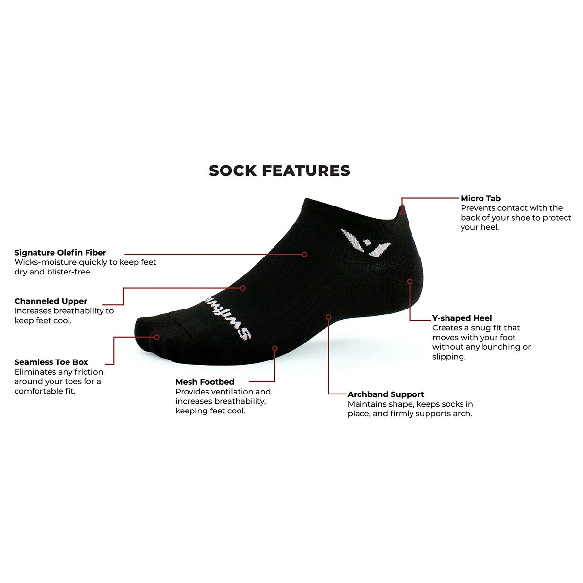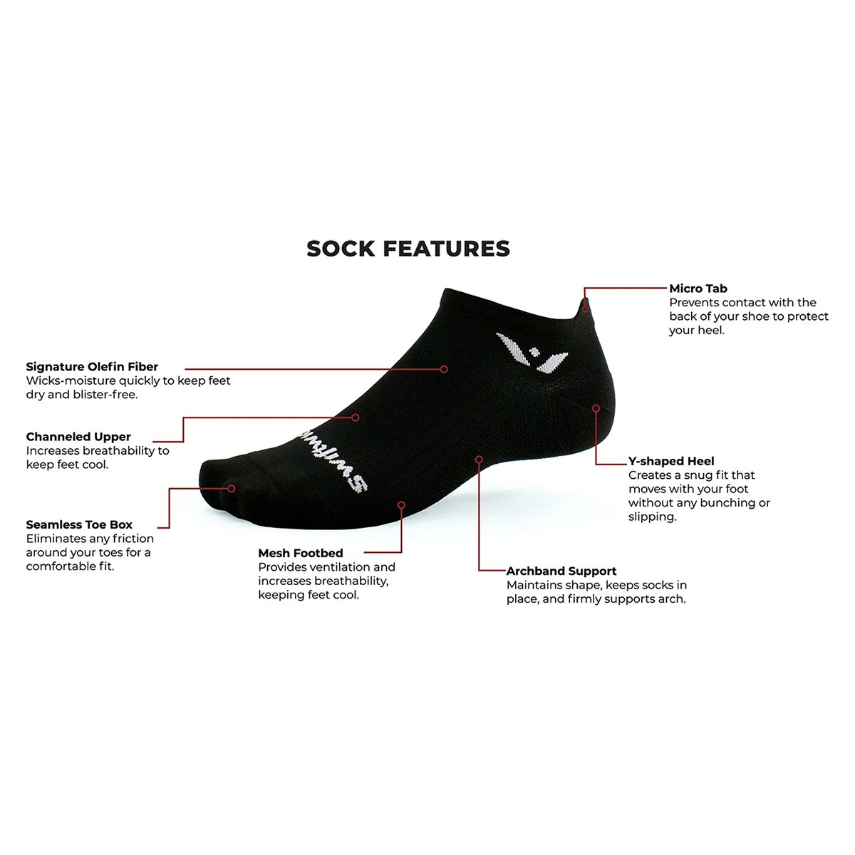 - Micro tab prevents contact between the heel and shoe