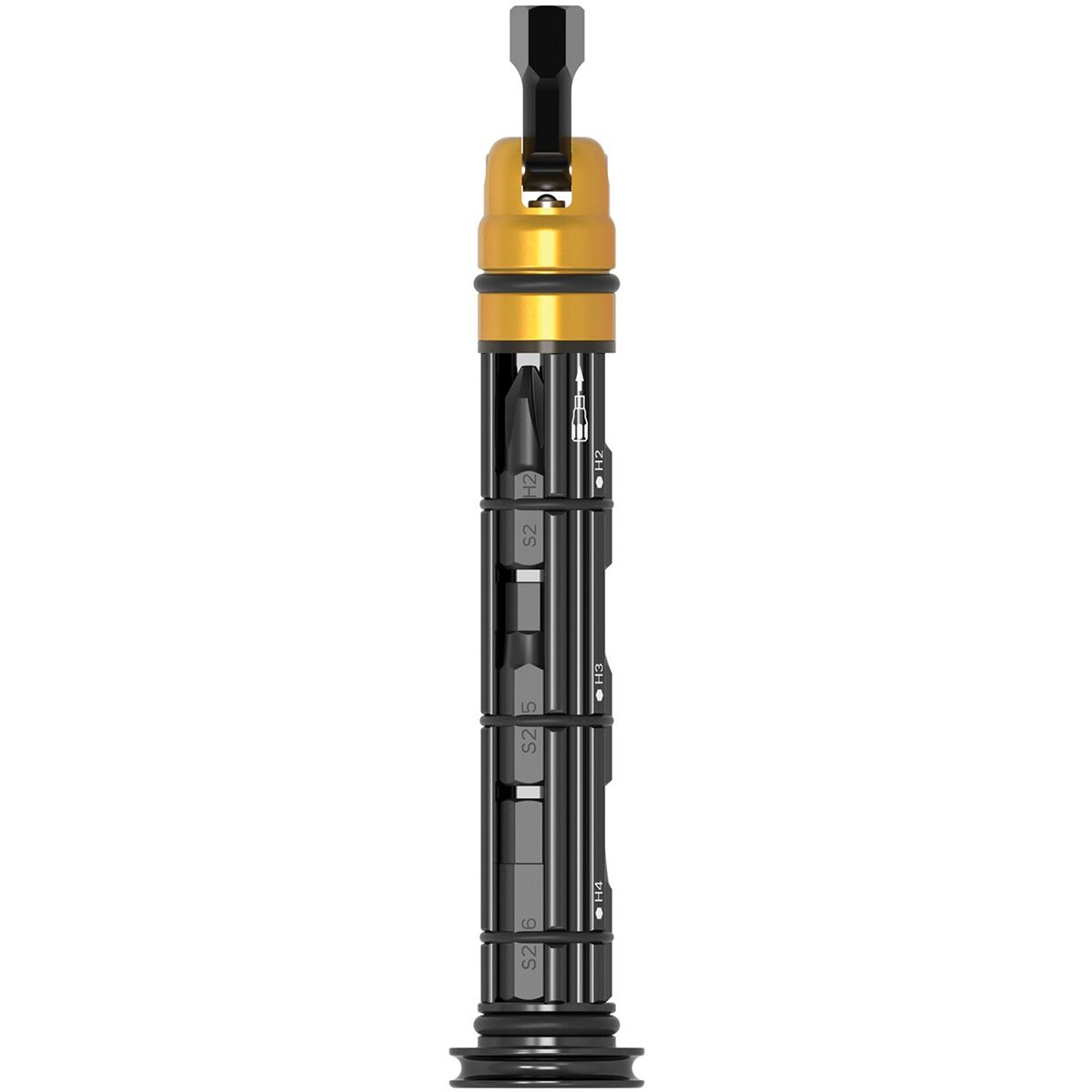 An ingenious concealed multi-tool, the Tool Insert Kit securely inserts into a wide variety of handlebar openings. Easily accessible for quick repairs, it comes in three sizes: Small Kit (5 tool bits), Medium (8 tool bits), and Large (11 tool bits). Each kit is constructed from durable machined aluminum and features premium hardened-steel bits.