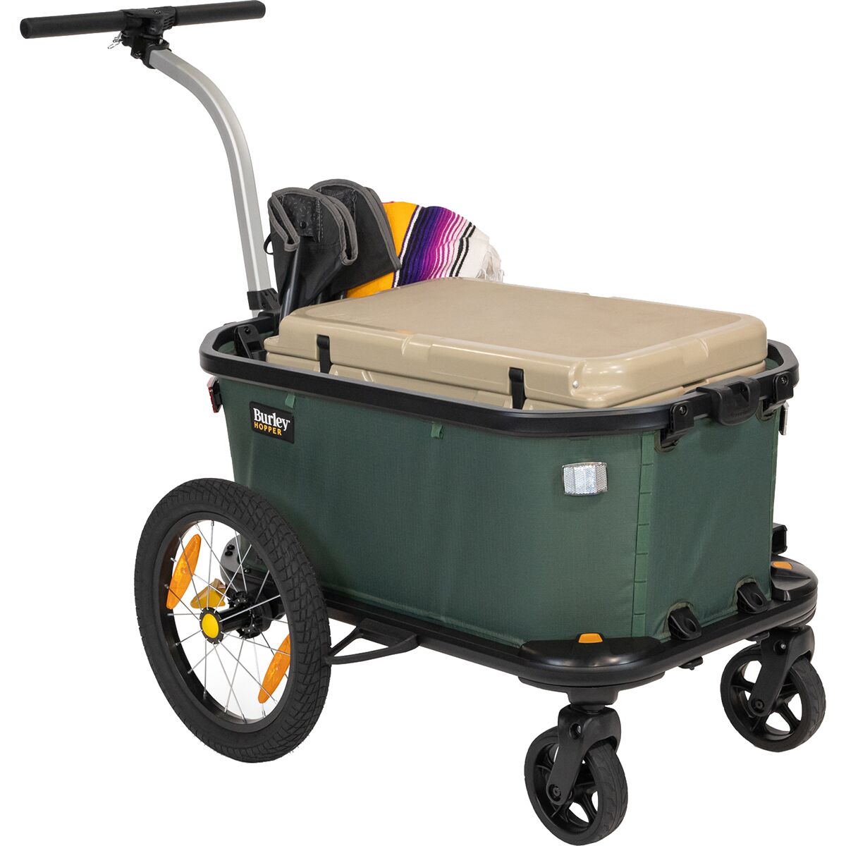 When we’re navigating the city or exploring local parks, the Hopper transforms how we move. Designed by Burley to replace short car trips, this multi-functional trailer and wagon lets us bike to the community market or stroll through the park with ease. The seamless tool-free transition from bike trailer to stroller mode keeps our pace fluid, while the sturdy caster wheels make maneuvering a breeze.