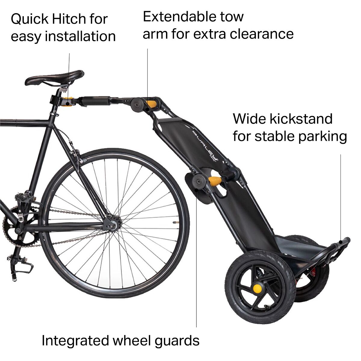 • A bike trailer designed to effortlessly carry your goods and gear
