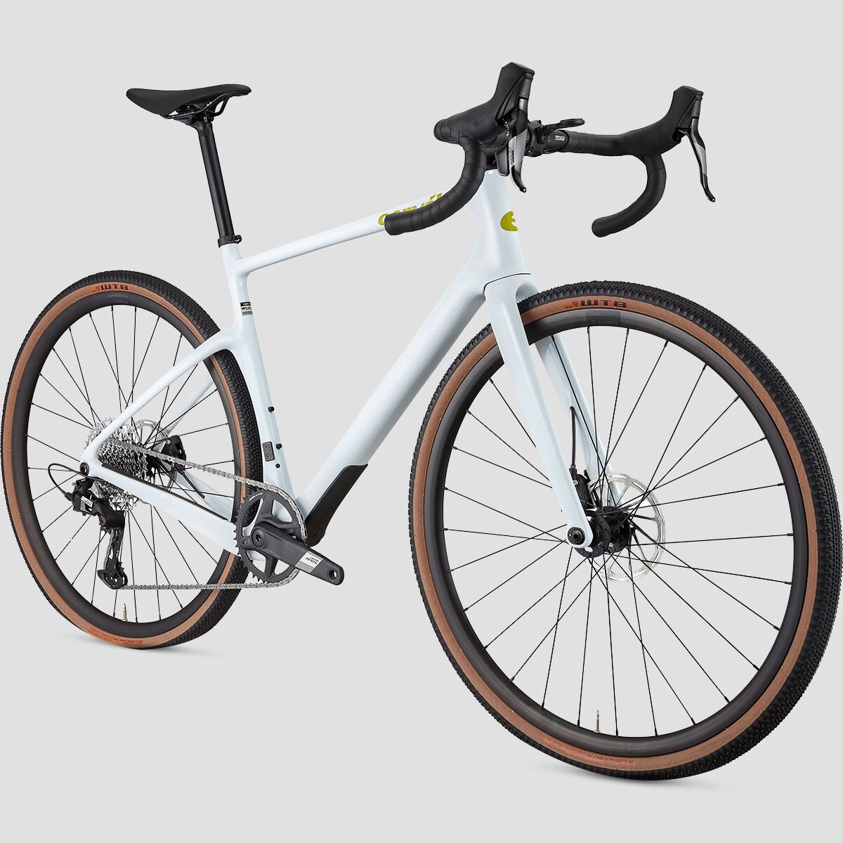 Whether we´re sprinting down a flat road, facing a tough climb, or powering down the other side, the 1 x 12-speed SRAM Apex drivetrain is on our side, providing us with ample gearing to attack anything that comes our way with a 40t chainring and 11-44t cassette range. Designed for gravel, the solo front chainring and wide range of gears in the back create a simple, efficient ride, using a unique chain and chainring design to ensure our chain stays in place over every bump. And, although stopping is our least favorite part of our ride, we are big fans of the hydraulic disc brakes that offer pinpoint control without needing to test our maximum grip strength.