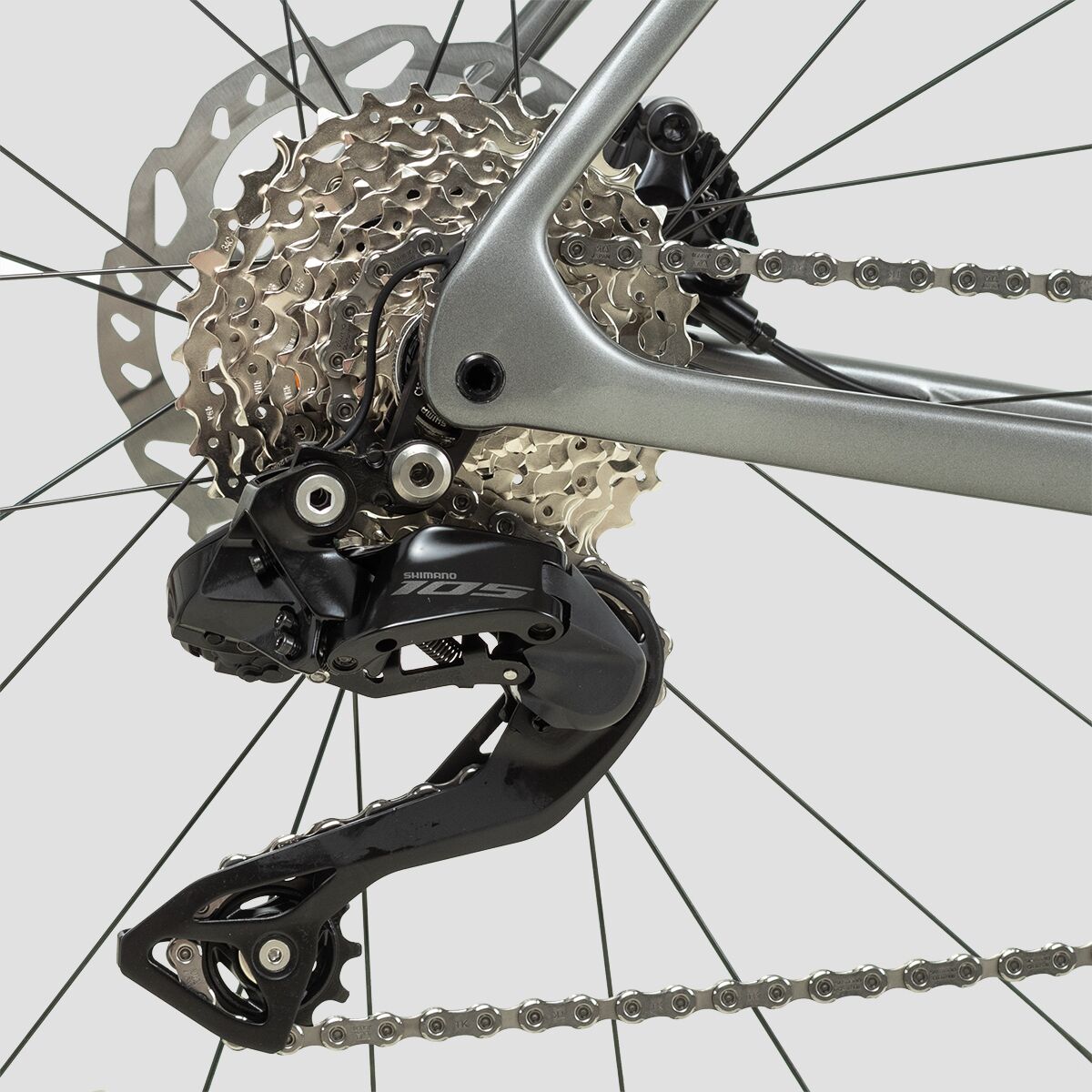 - Spec’d with the Shimano 105 Di2 drivetrain for quick, efficient shifting