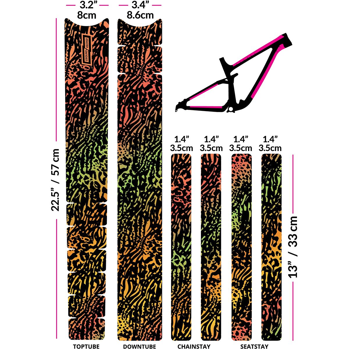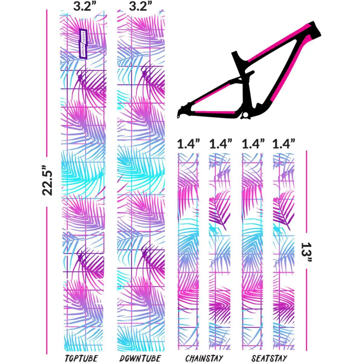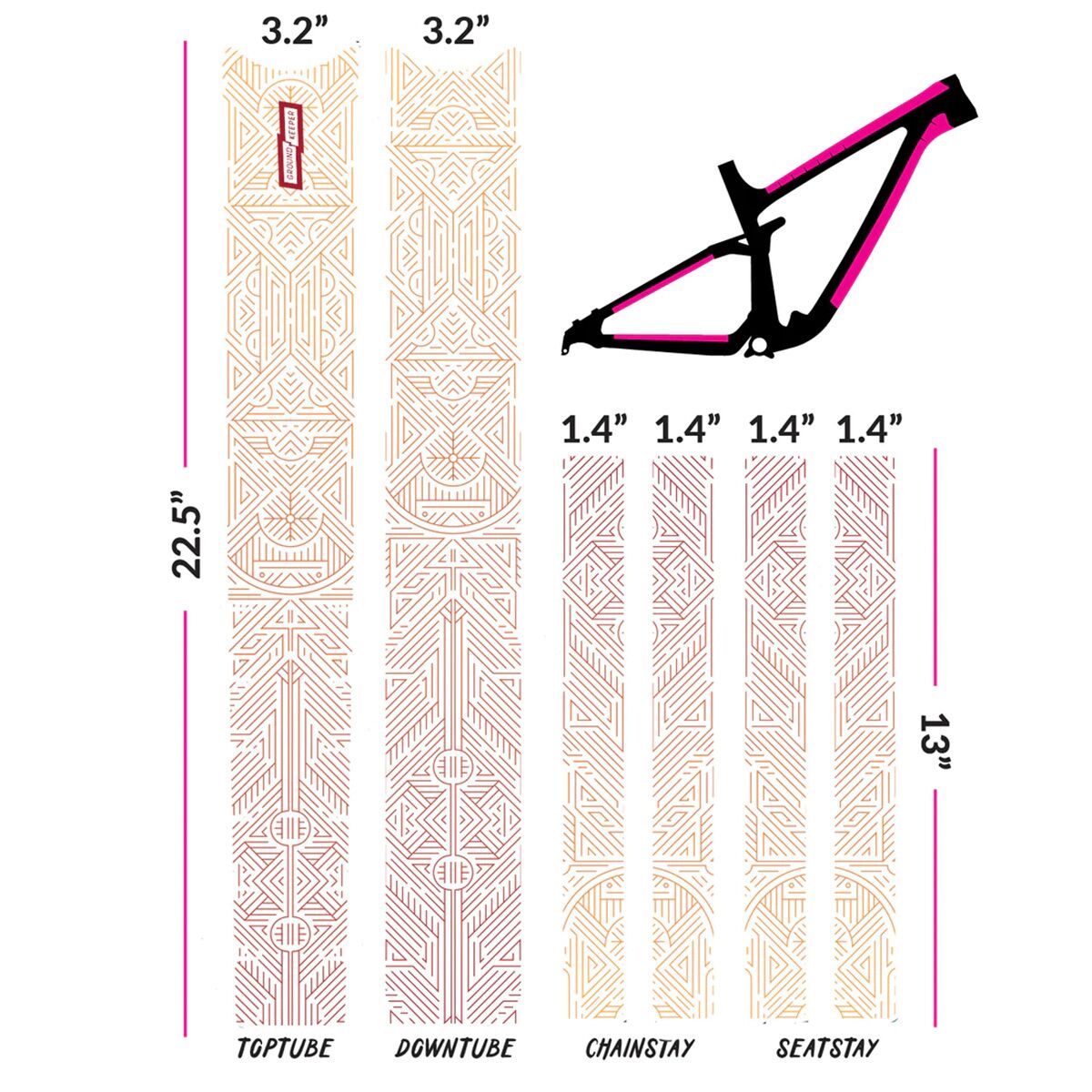 - 6 pieces to cover top tube, downtube, chainstays, and seatstays