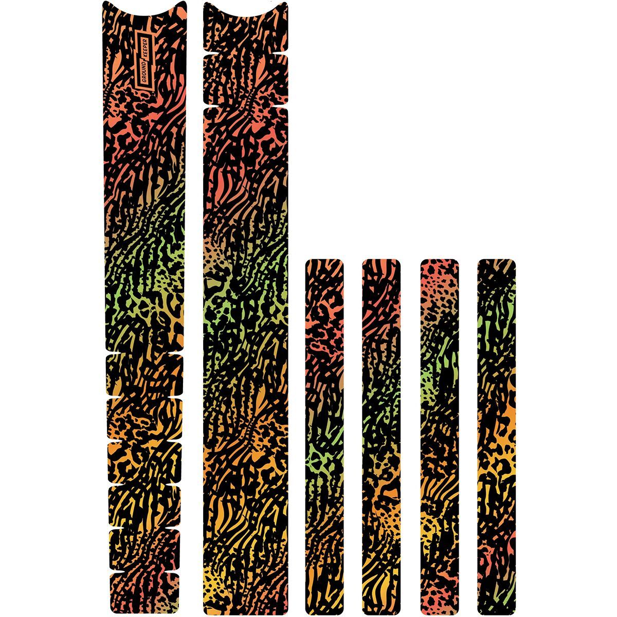 Nobody likes paint chips in their carbon wonder bike, which is why choose to protect our frames with the Ground Keeper Frame Keeper. This universal frame protection kit fits just about any type and size of bike, and comes with 6 easy-to-trim pieces to cover the most exposed areas of your bike. Not only will your bike be protected from scuffs, chips, and scratches, but you also get a custom look thanks to a wide selection of available graphics.
