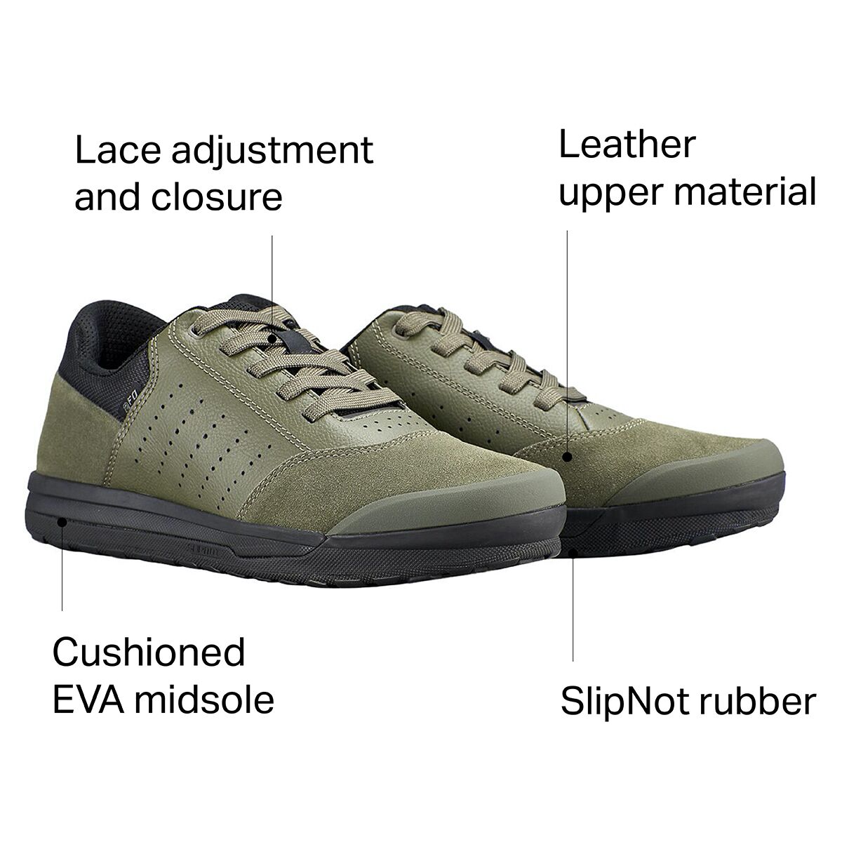 Whether we´re exploring backwoods trails in remote locations or spinning bike park laps, the 2FO Roost Shoe is among our top picks for flat pedal riders. The SlipNot ST rubber sole features lugs that are spaced perfectly for pedal pins, and the leather upper resists abrasions from heavy usage and aggressive riding.