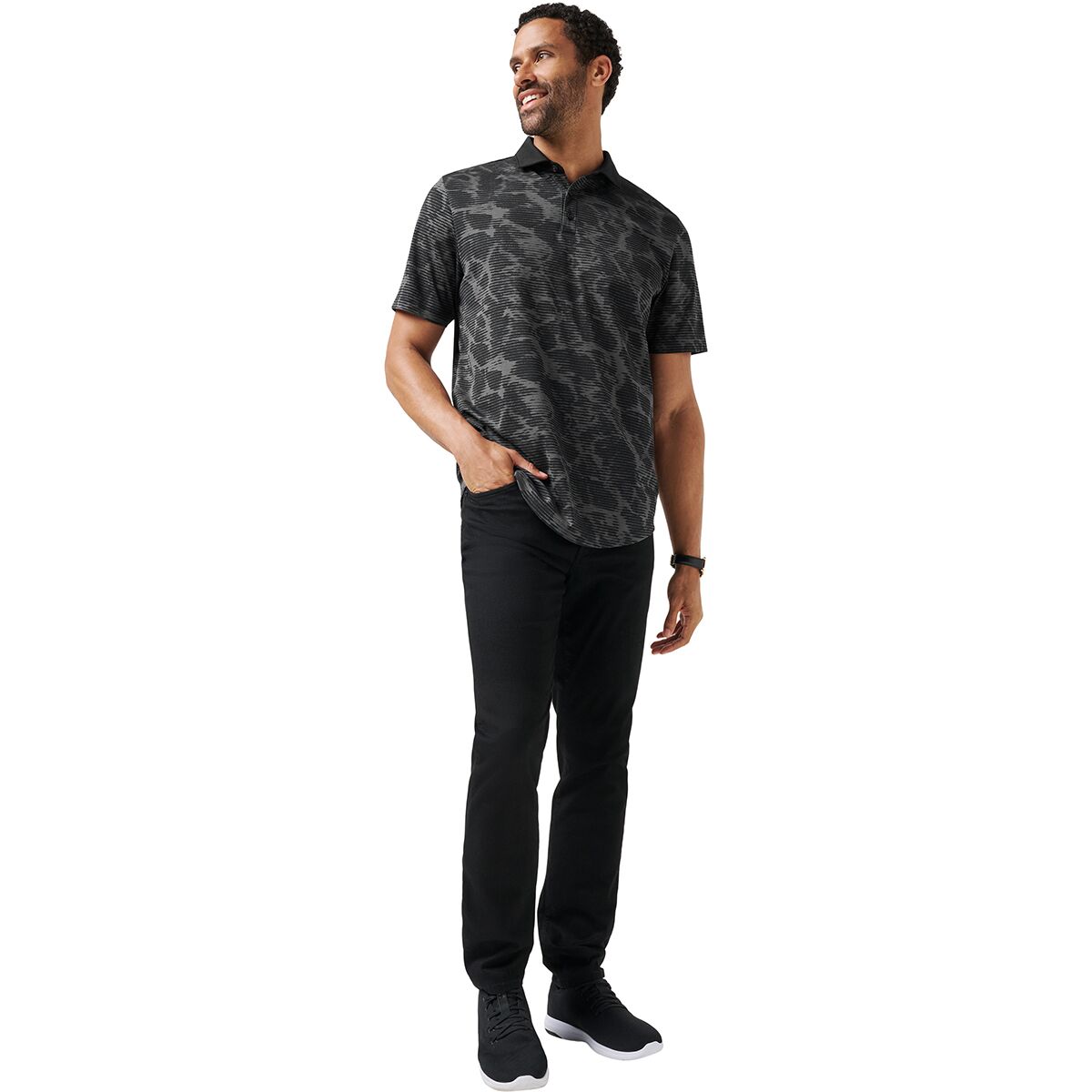 Study Abroad Polo brings elevated comfort and edge with a tonal abstract print