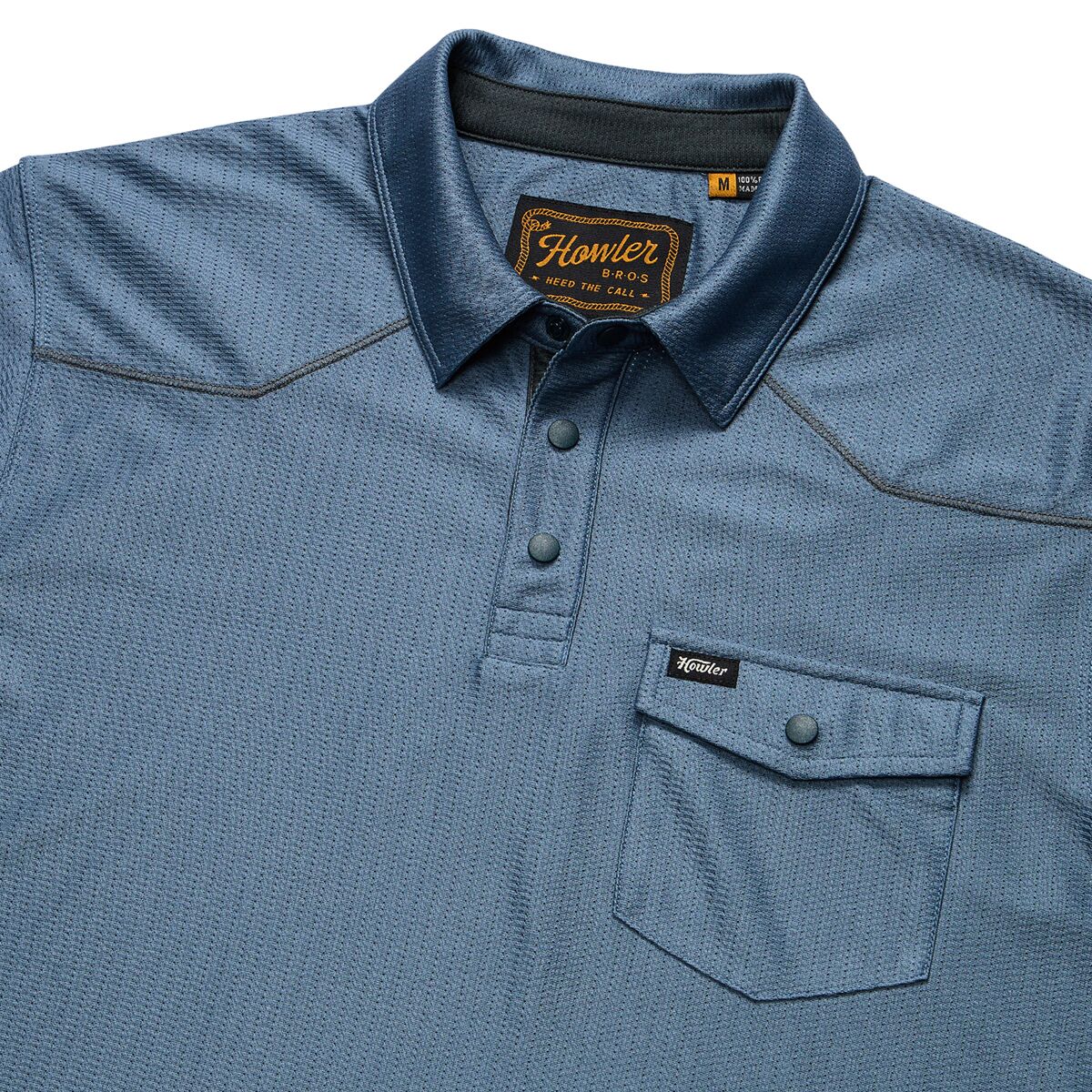 "This polo is the best of both worlds—lightweight and breathable enough for scorching days, but still stylish enough for a post-adventure drink. The recycled polyester mesh keeps things cool, while the Western yokes and matte snaps give it that signature ranch-ready look."