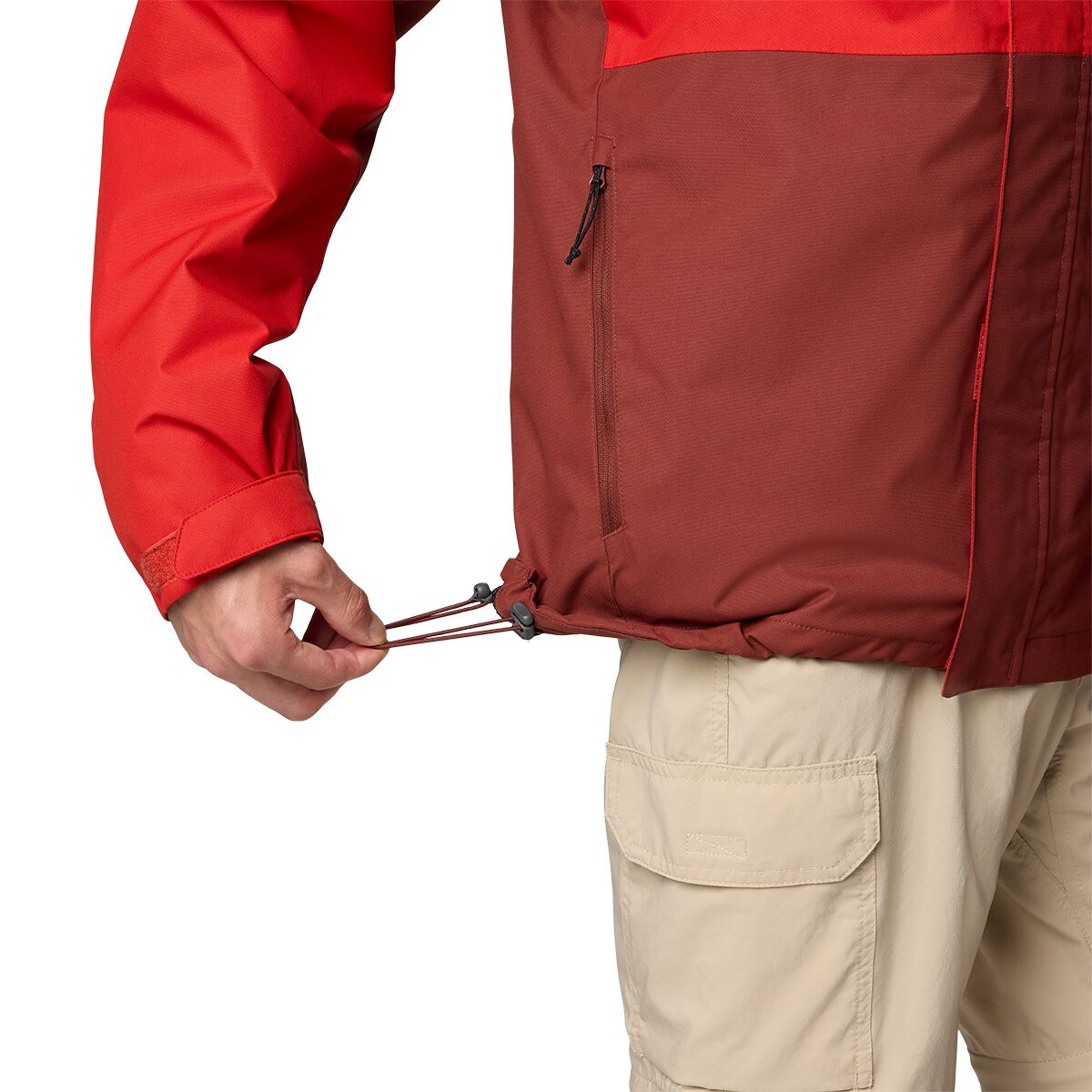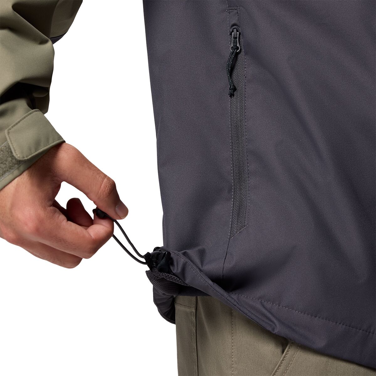 • Zips away inside its own hand pocket for compact stashing