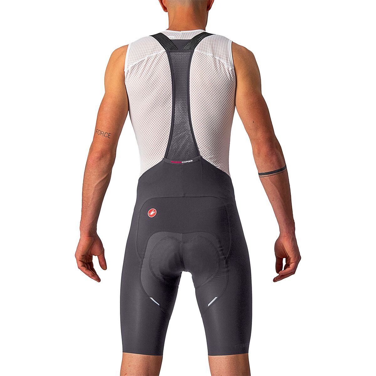 Castelli´s Free Aero RC Bib Short offers a compressive feel and superb comfort engineered for high-level racing. Forza 2 fabric provides outstanding muscle support and compression, and minimalist bib straps allow maximum airflow while keeping everything in place. A soft waistband and leg endings both feature a raw-cut design for added stretch and comfort, and a rear mesh pocket lets us reach back for the gels or snacks we couldn´t fit in our jersey pockets.